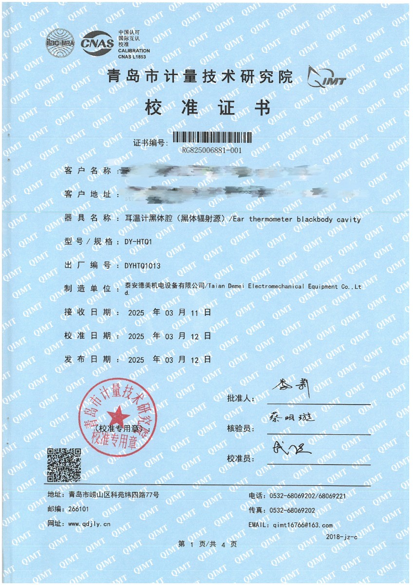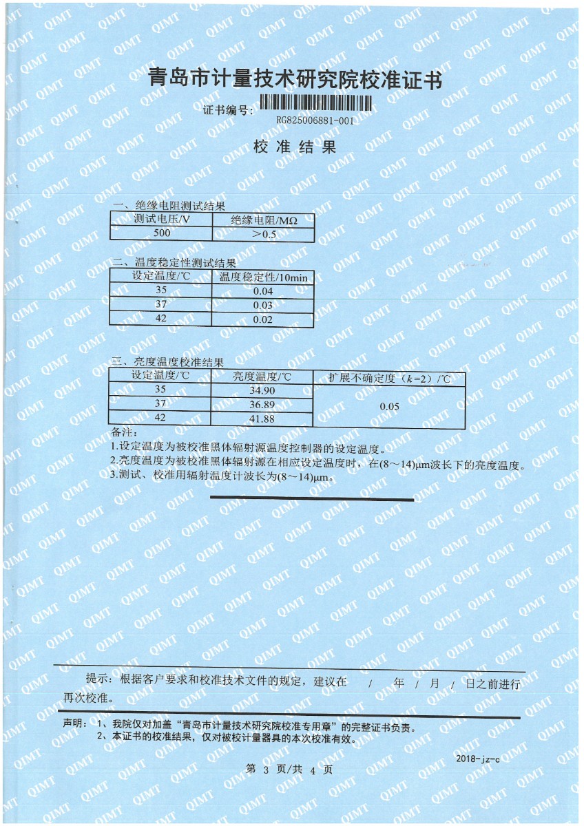 耳溫計(jì)黑體空腔校準(zhǔn)證書 2025-3-25 本文被閱讀 4370 次