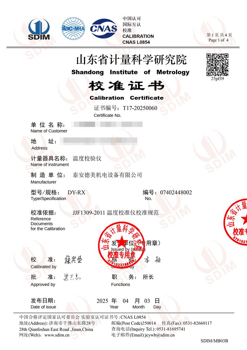 溫度校驗儀校準證書 2025-4-7 本文被閱讀 3505 次