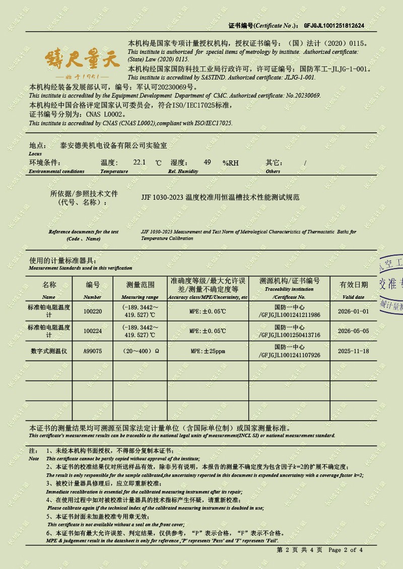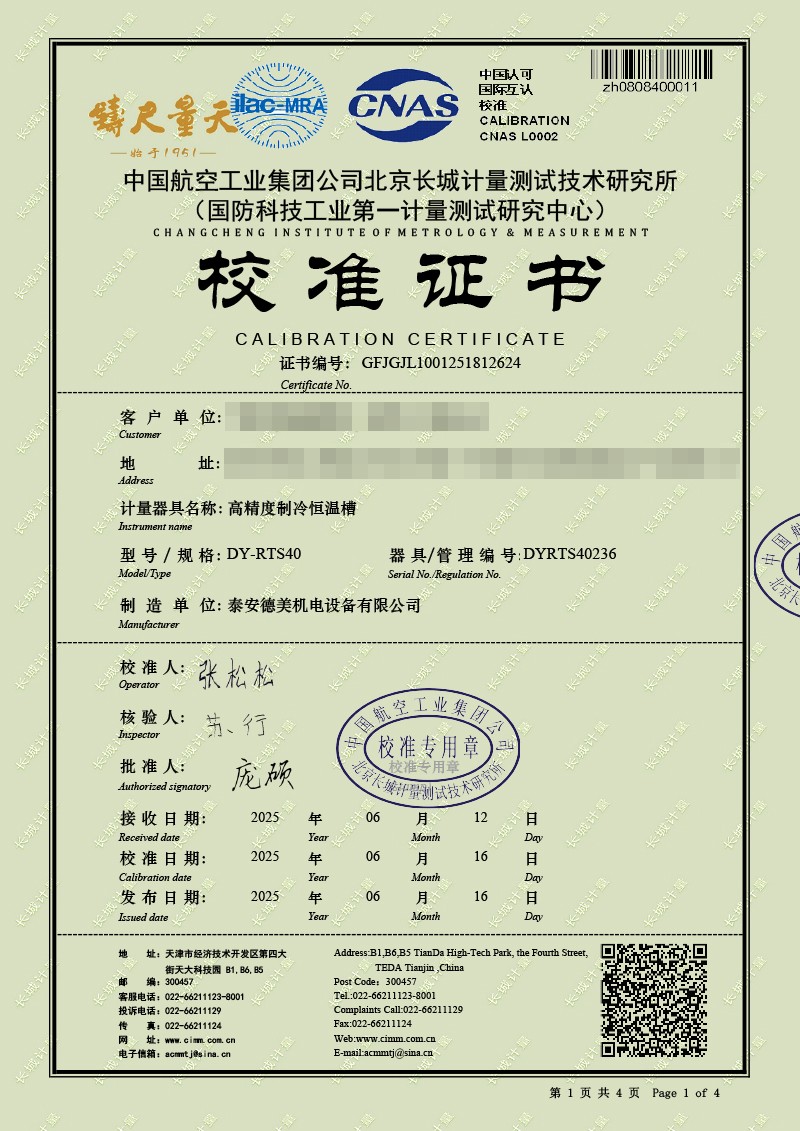 高精度制冷恒溫(-40-100℃)校準證書 2025-6-25 本文被閱讀 3139 次