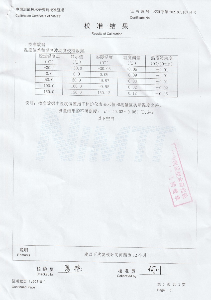 | 上一條:深圳村田科技有限公司-溫濕度檢定箱 | 下一條:露點(diǎn)儀檢定、校準(zhǔn)證書 |