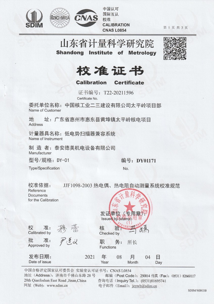 | 上一條:DY-HTM面源黑體爐,輻射面100mm(-20℃~600℃) | 下一條:溫濕度檢定箱校準(zhǔn)證書(shū) |