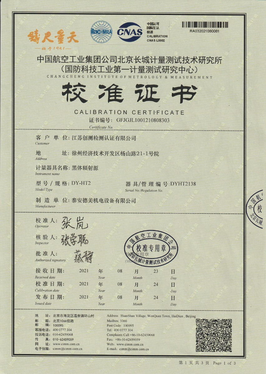 江蘇創(chuàng)測檢測認(rèn)證有限公司-黑體輻射源 2021-9-1 本文被閱讀 17580 次
