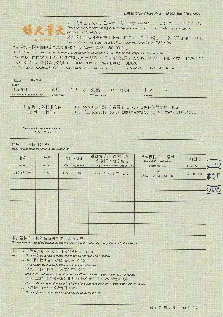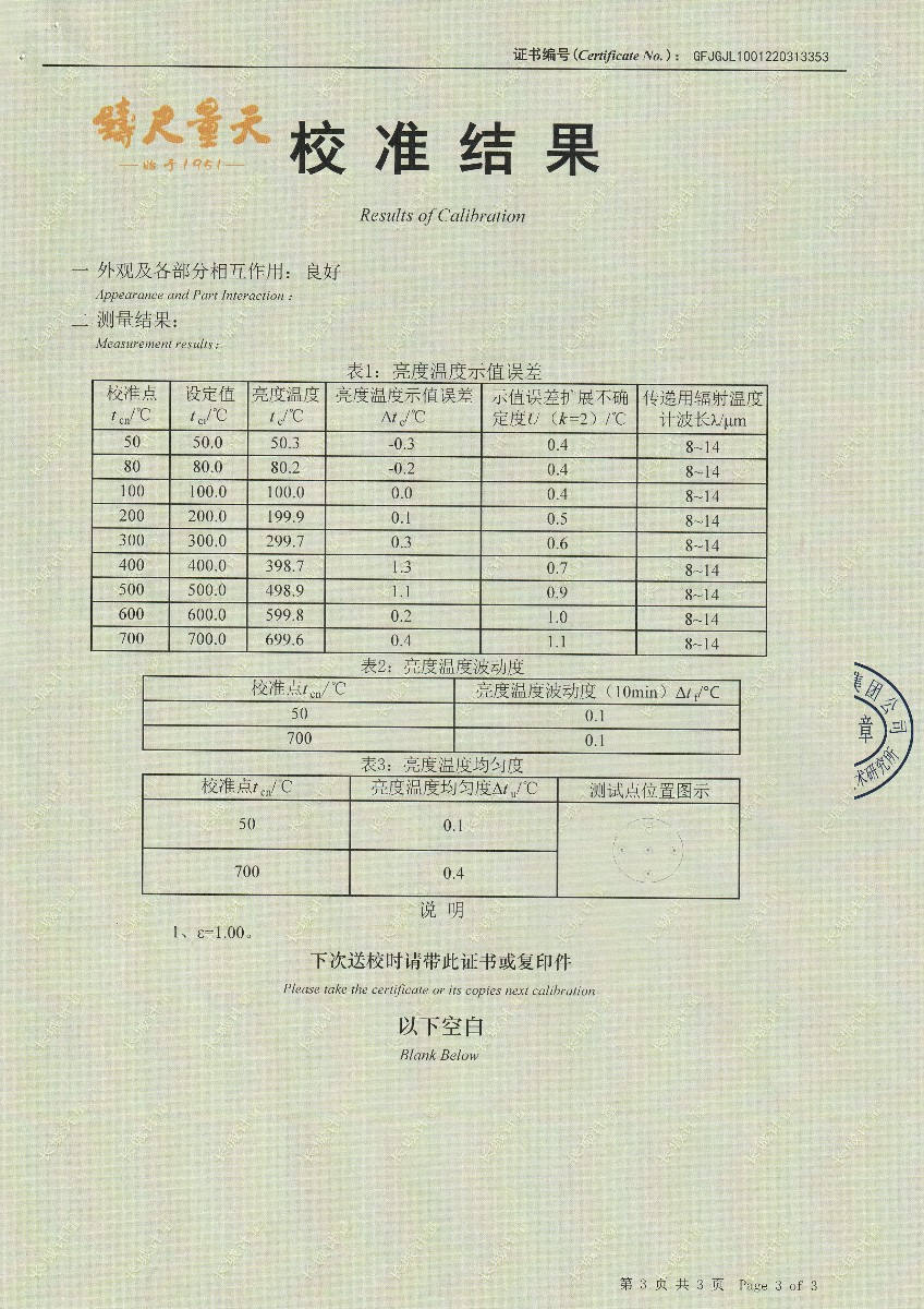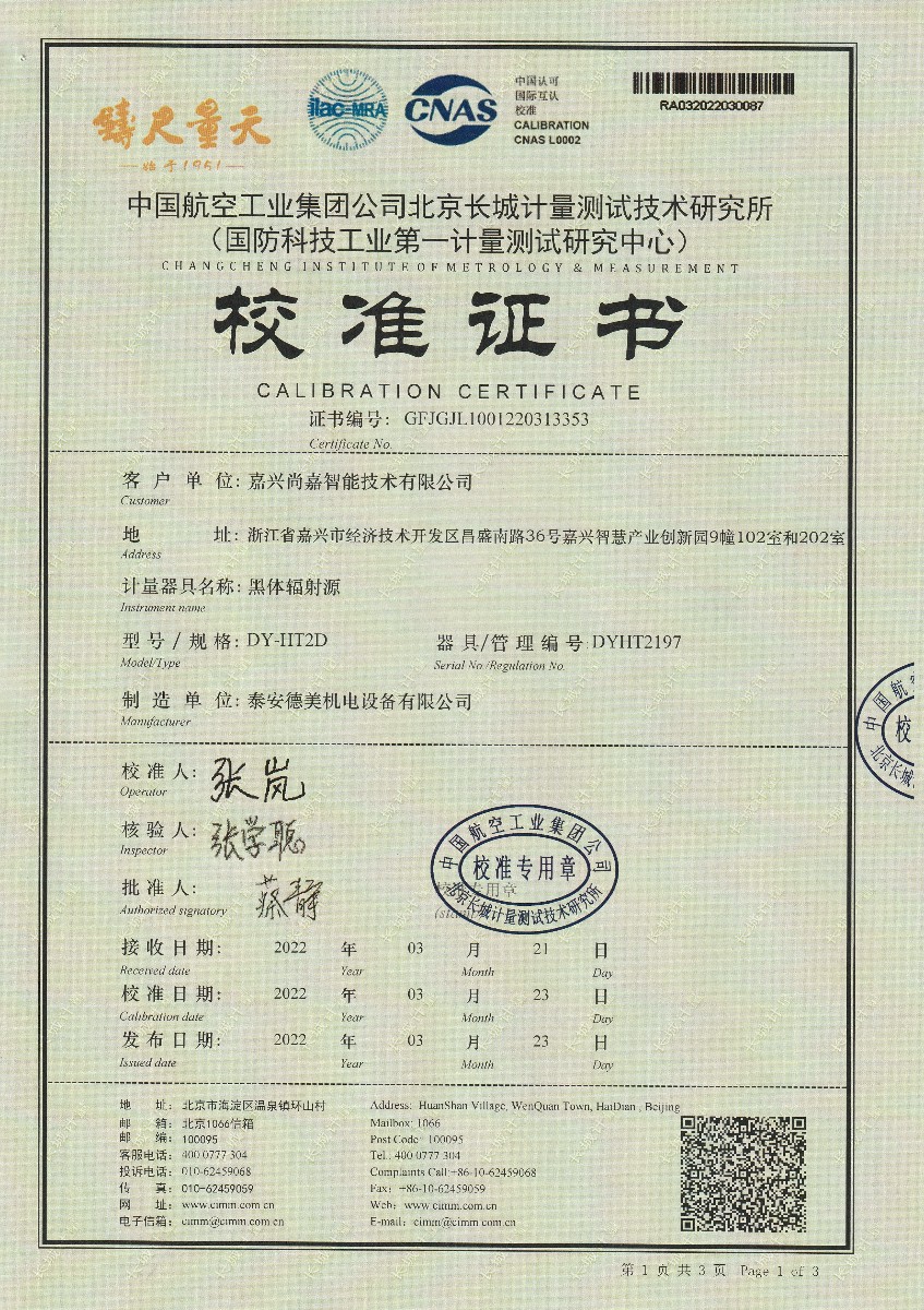 | 上一條:嘉興尚嘉智能技術(shù)有限公司-黑體輻射源(DY-HT1A) | 下一條:高精度制冷恒溫槽(-80~100℃)校準(zhǔn)證書 |