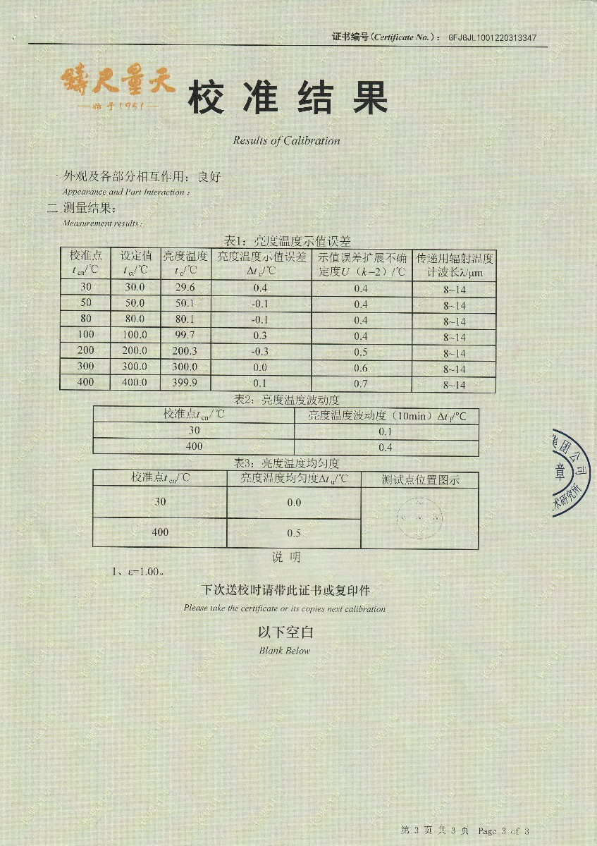 | 上一條:嘉興尚嘉智能技術(shù)有限公司黑體輻射源(DY-HT2D) | 下一條:高精度制冷恒溫槽(-80~100℃)校準(zhǔn)證書(shū) |
