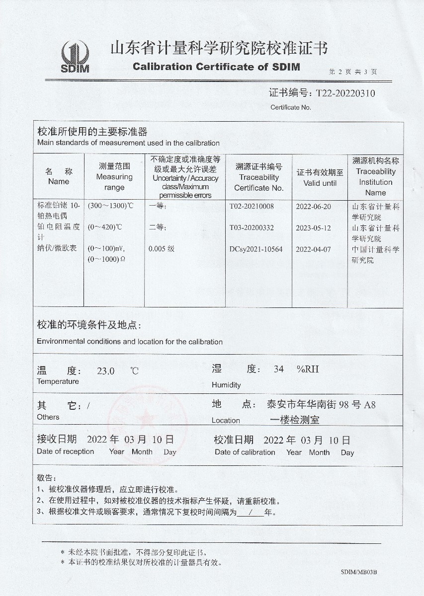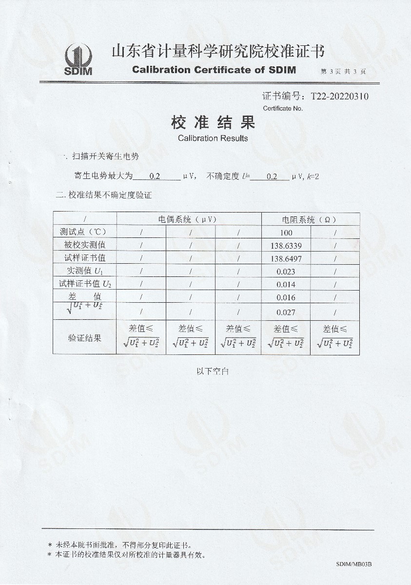 | 上一條:江蘇南瑞泰事達(dá)電氣有限公司-黑體輻射源 | 下一條:高精度制冷恒溫槽(-80~100℃)校準(zhǔn)證書 |