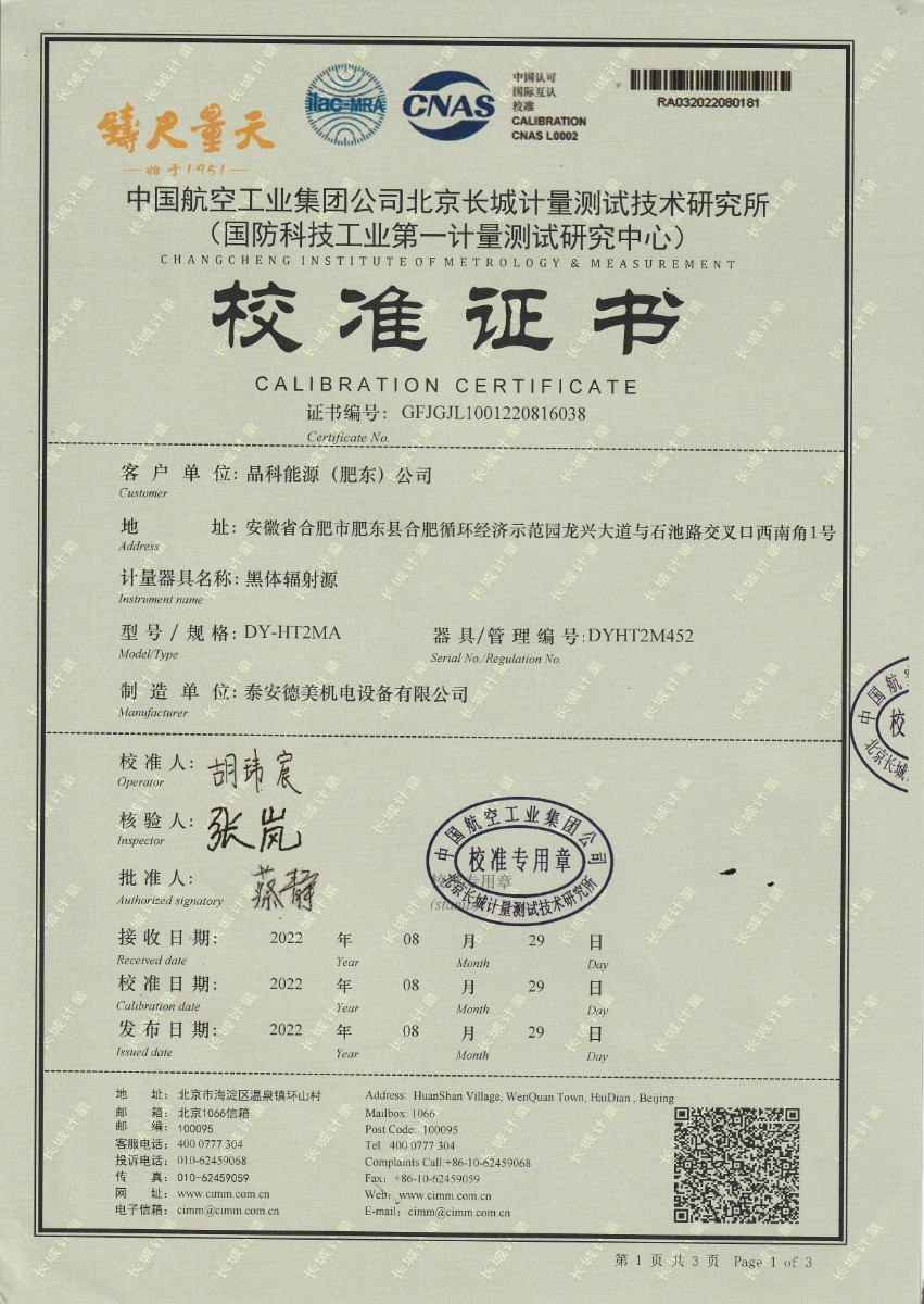 晶科能源(肥東)公司-黑體輻射源 2022-9-5 本文被閱讀 13054 次
