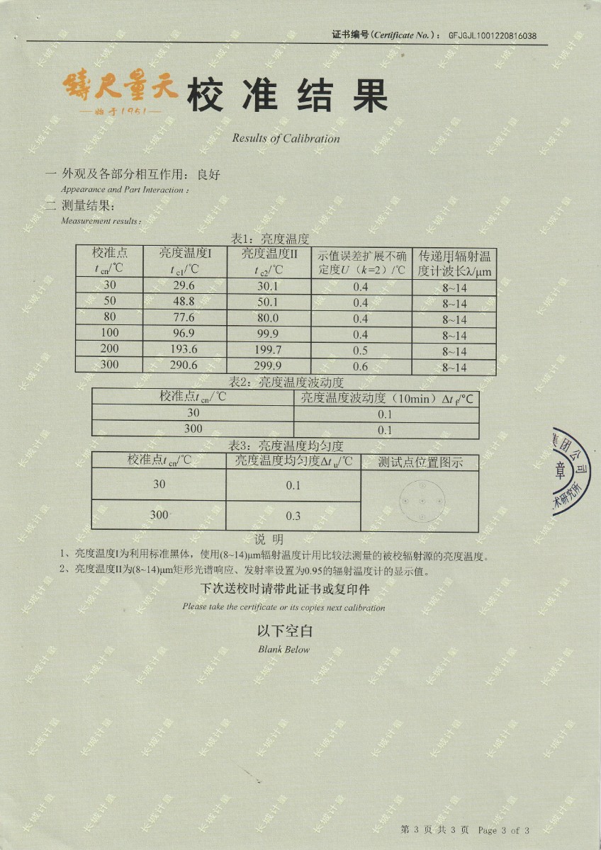 上一條:國科天成科技股份有限公司-黑體輻射源下一條:高精度制冷恒溫槽(-80~100℃)校準證書