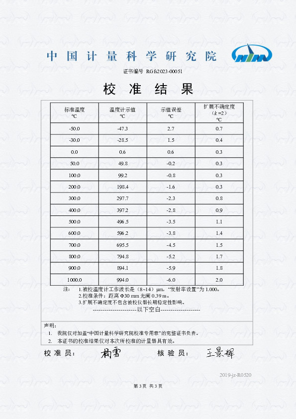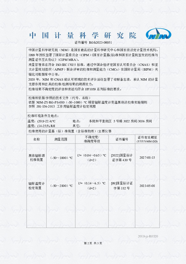 泰安德美機電設(shè)備有限公司 TRT4.82 精密輻射溫度計 校準(zhǔn)證書 2023-2-9 本文被閱讀 12790 次