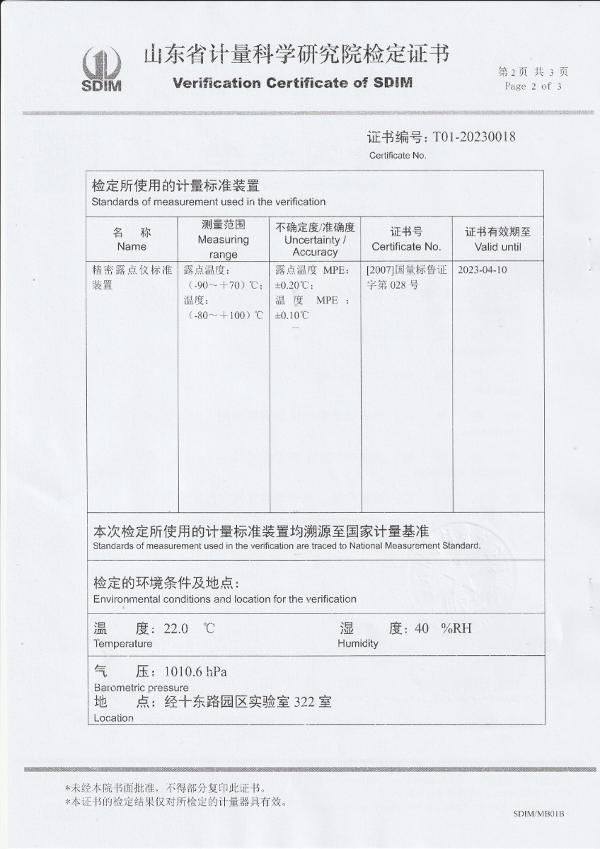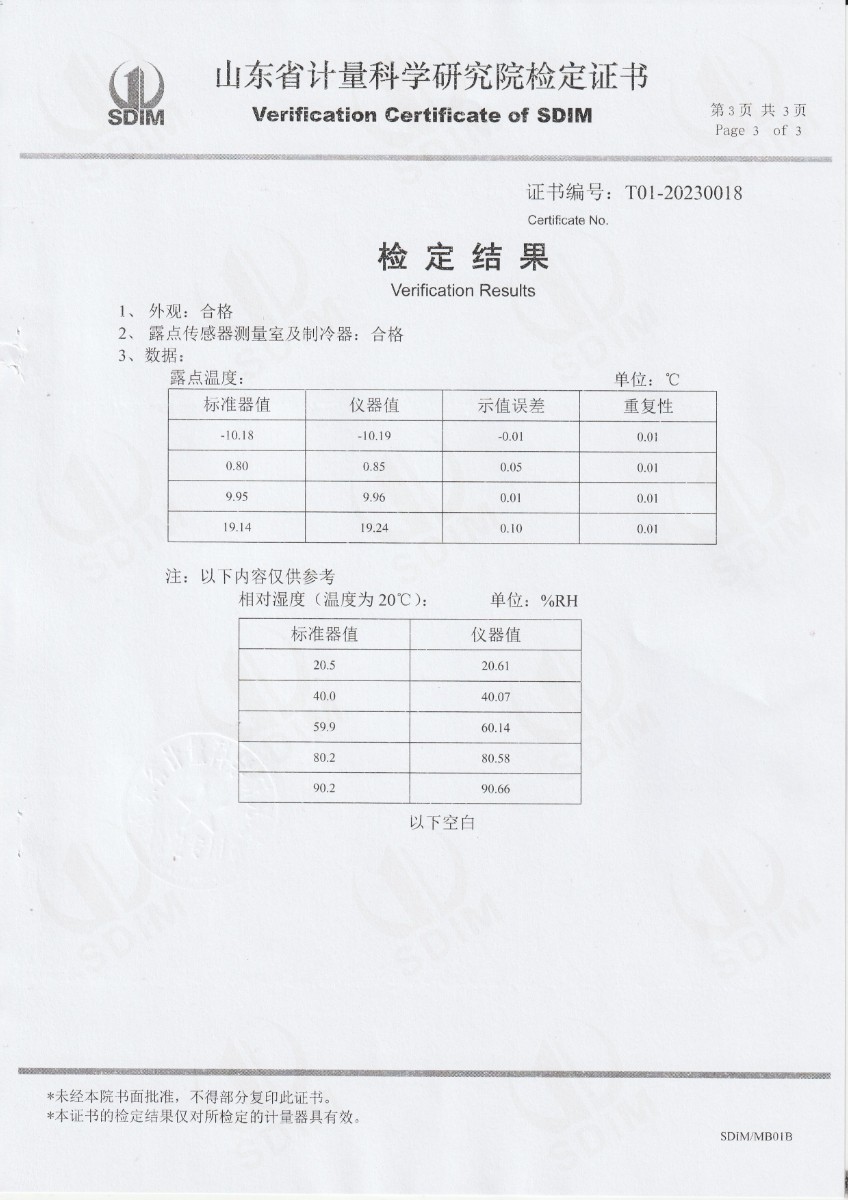 廈門新能安科技有限公司 冷鏡式露點儀 檢定證書 2023-2-25 本文被閱讀 10190 次