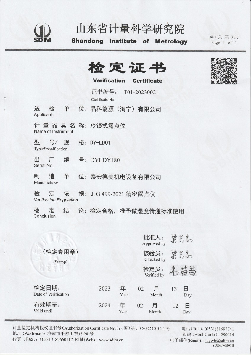 | 上一條:西安楊森制藥有限公司 冷鏡式露點儀(溫度) 校準(zhǔn)證書 | 下一條:溫濕度檢定箱校準(zhǔn)證書 |