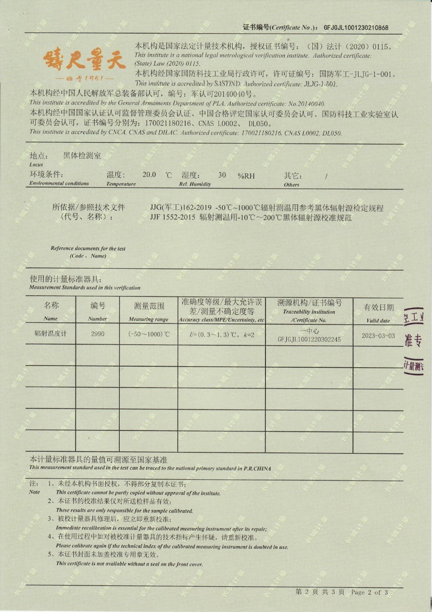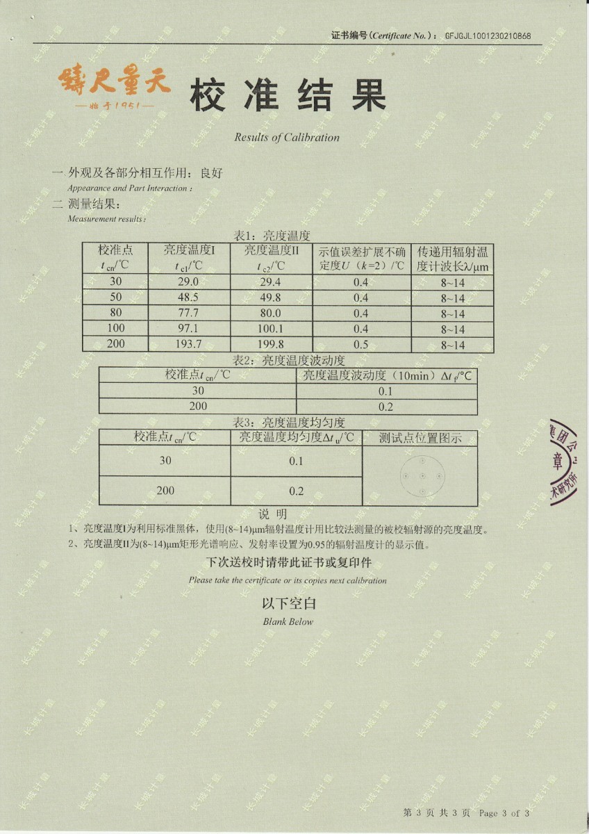 | 上一條:西安和其光電科技股份有限公司 低溫浴式黑體輻射源 校準(zhǔn)證書 | 下一條:露點(diǎn)儀檢定、校準(zhǔn)證書 |