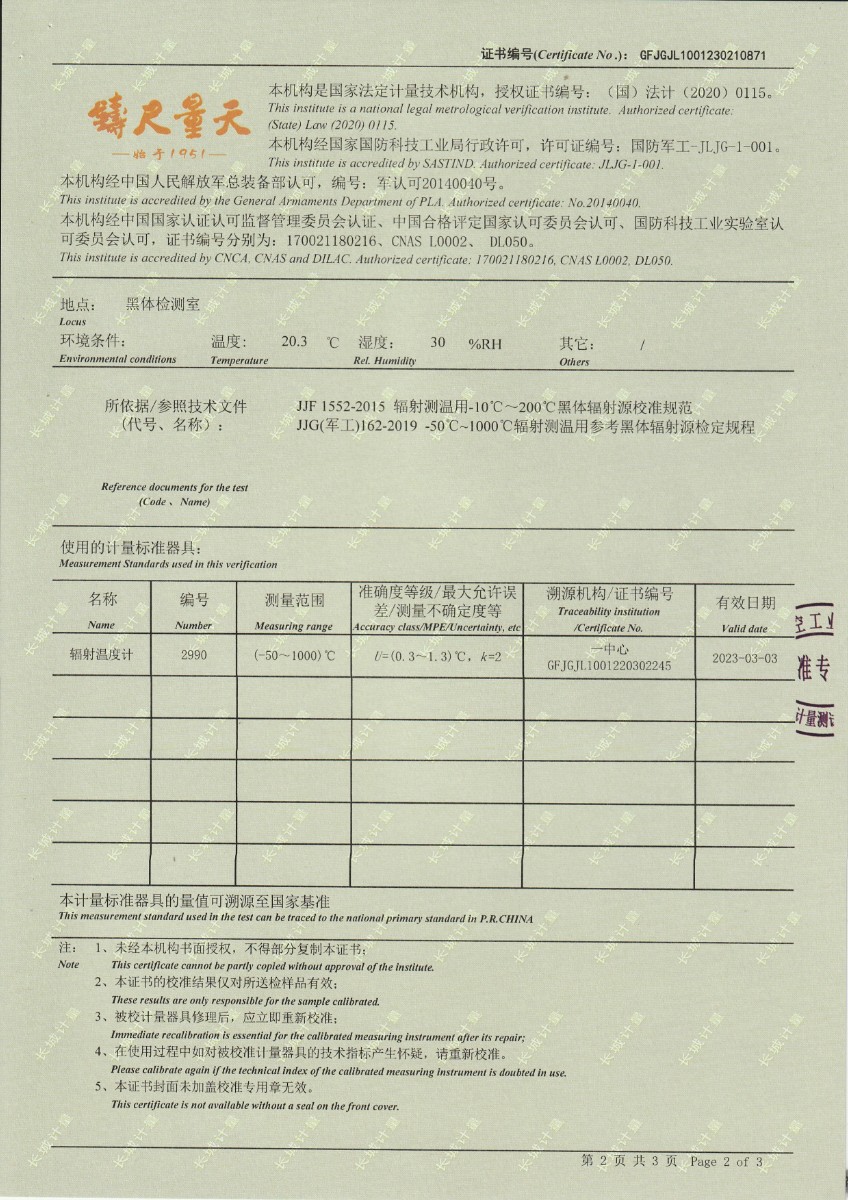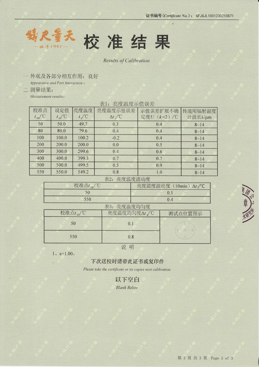 青島加侖檢測技術(shù)服務(wù)有限公司 黑體輻射源 校準證書 2023-2-25 本文被閱讀 13484 次
