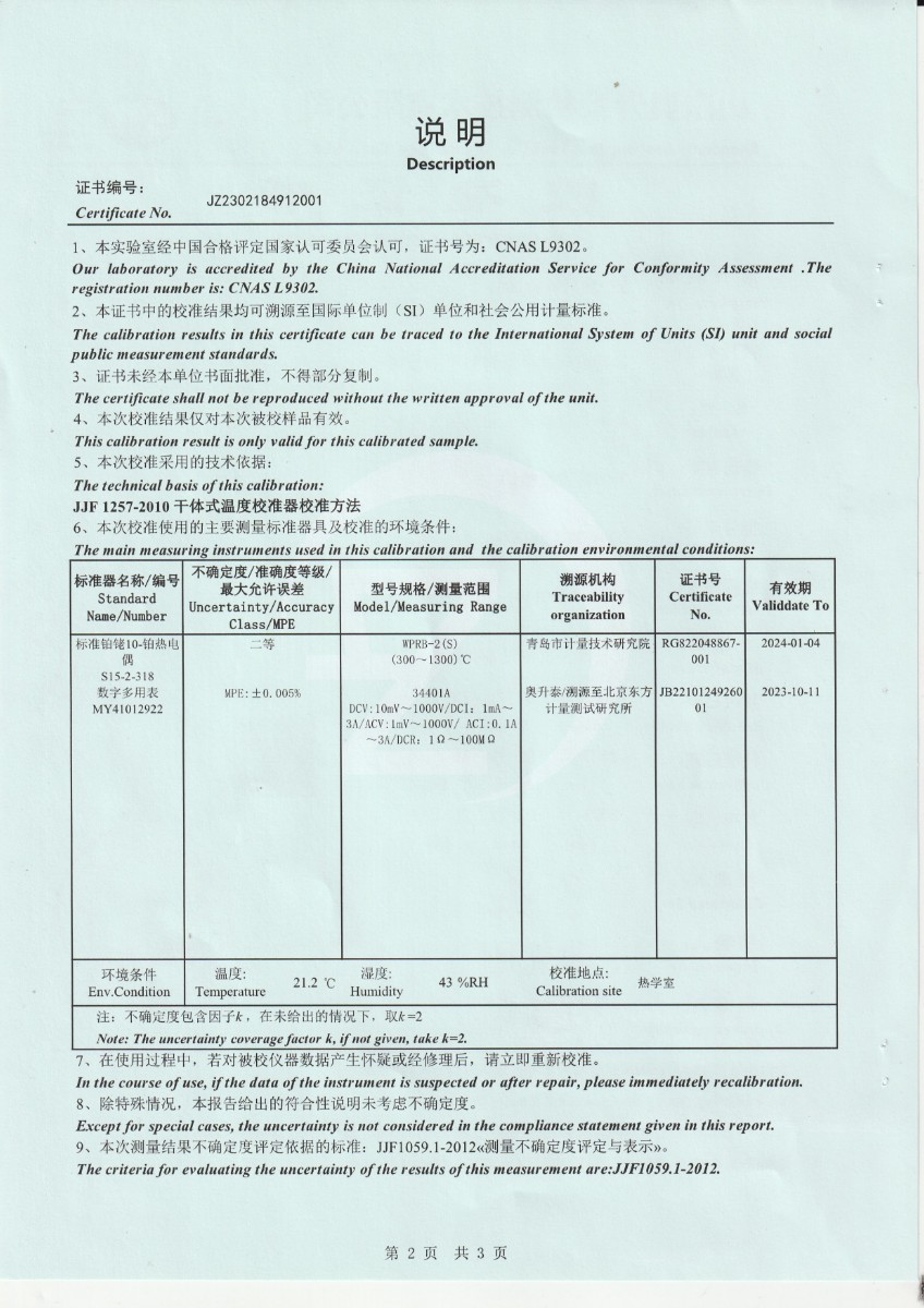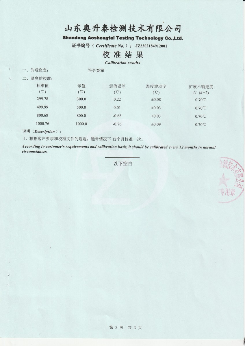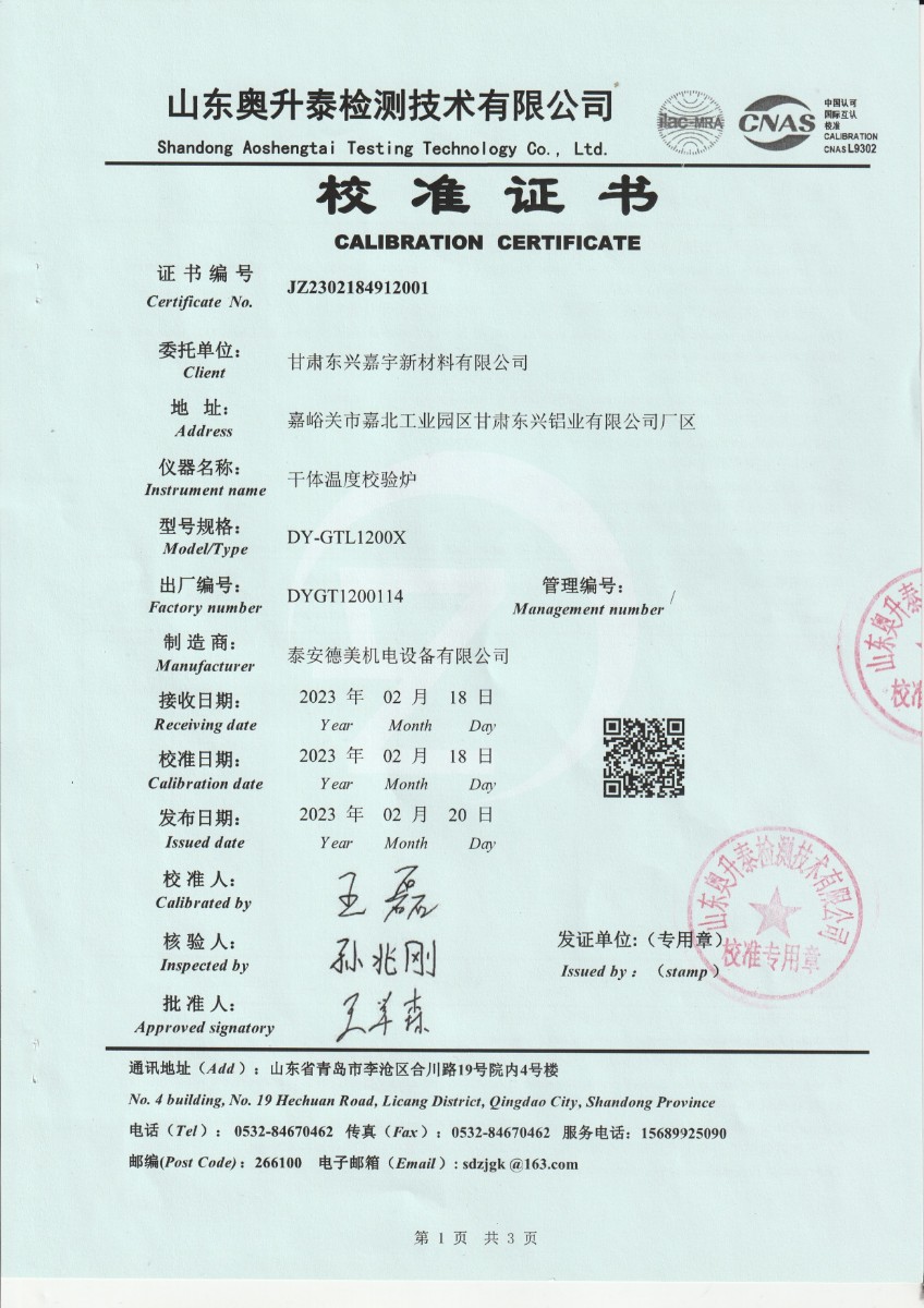 甘肅東興嘉宇新材料有限公司 干體溫度校驗爐 校準證書(1) 2023-2-25 本文被閱讀 16120 次
