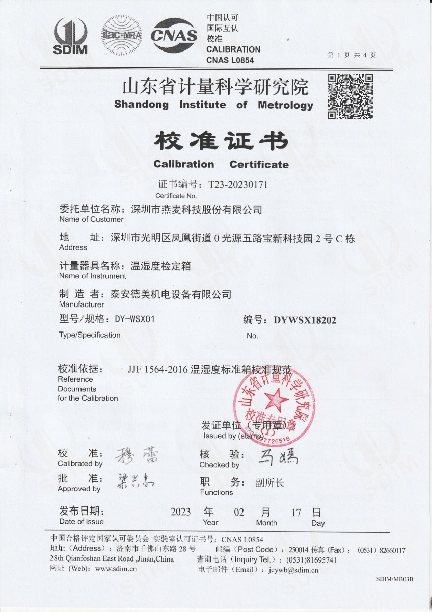 | 上一條:甘肅東興嘉宇新材料有限公司 干體溫度校驗爐 校準(zhǔn)證書(2) | 下一條:露點儀檢定、校準(zhǔn)證書 |