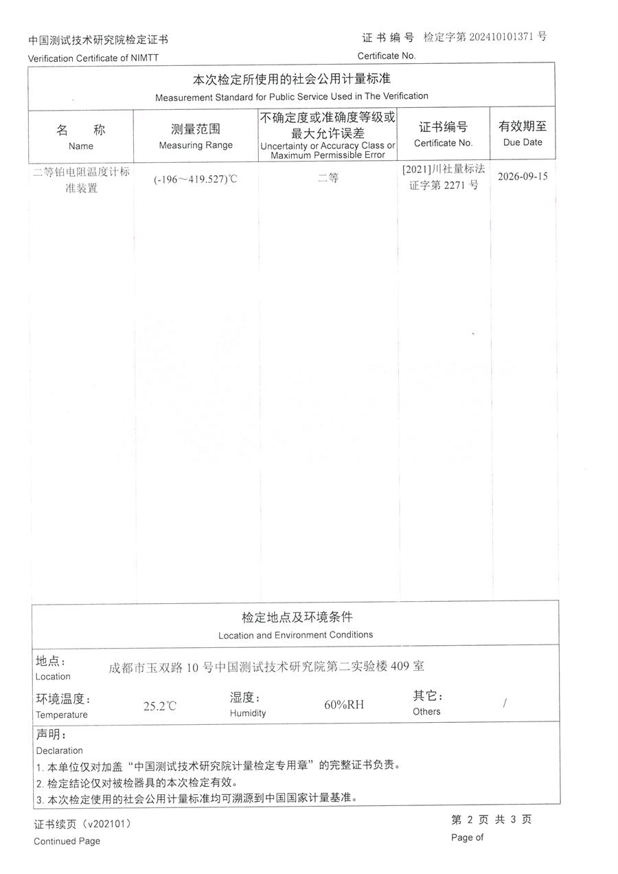 上一條:面源黑體爐(室溫+5-300℃)校準證書下一條:高精度制冷恒溫槽(-80~100℃)校準證書