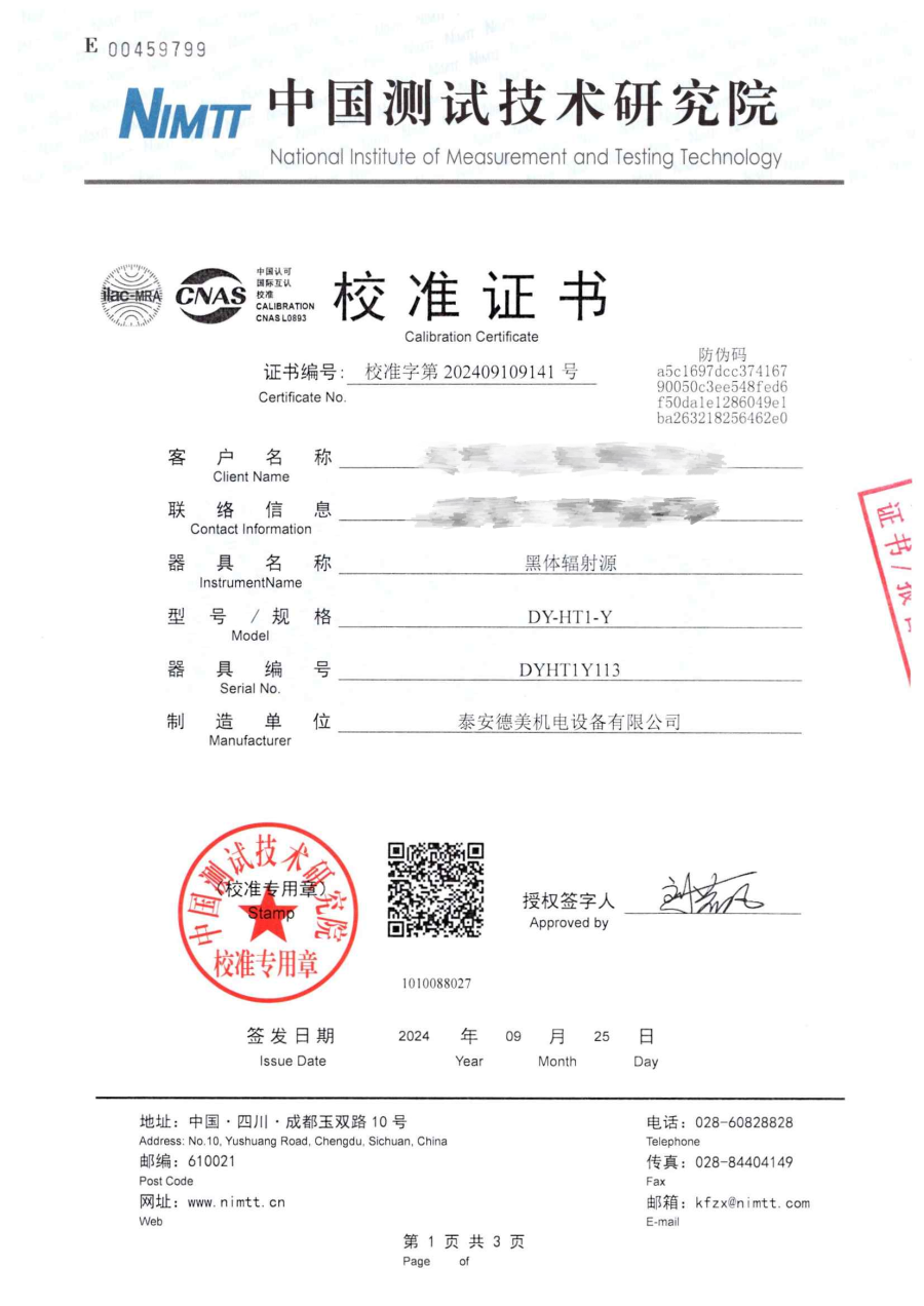 浴式黑體校準(zhǔn)證書 2024-10-21 本文被閱讀 7777 次