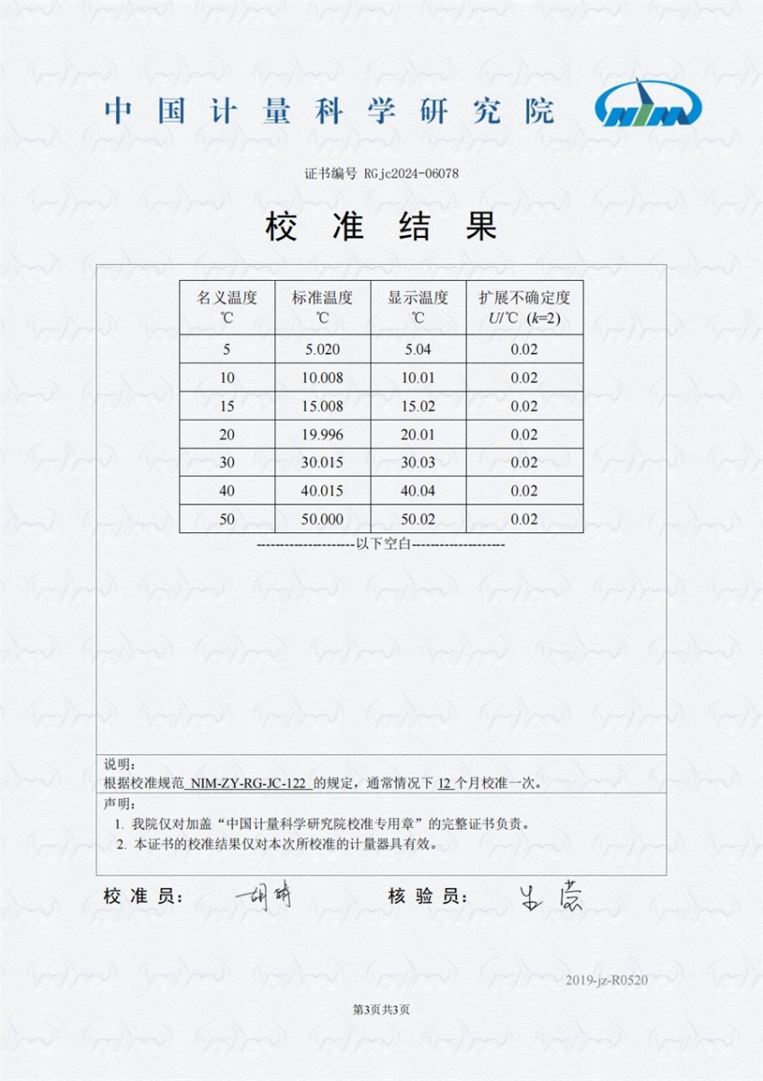 | 上一條:冷鏡式露點(diǎn)儀檢定證書(shū) | 下一條:高精度制冷恒溫槽(-80~100℃)校準(zhǔn)證書(shū) |