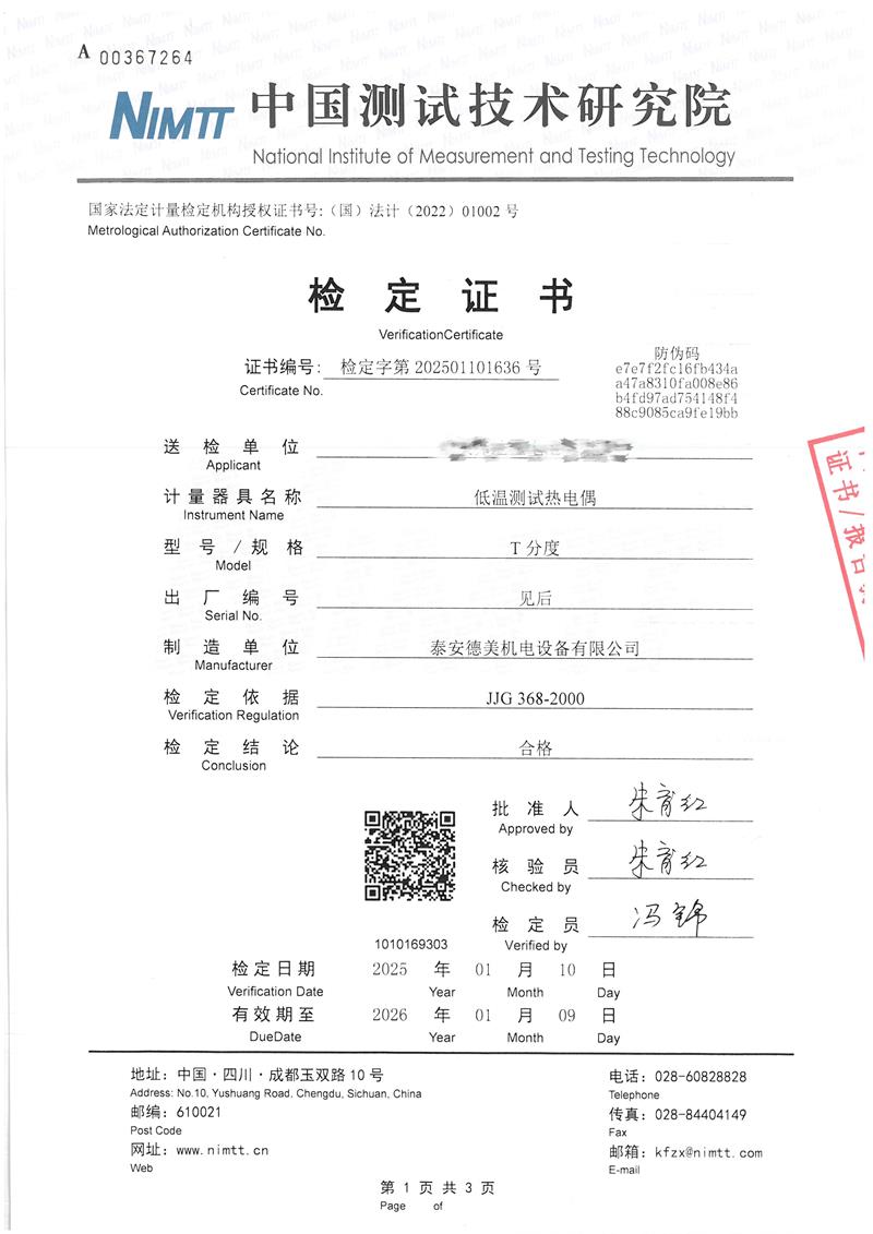 | 上一條:高溫黑體爐(800-3000℃)校準(zhǔn)證書 | 下一條:高精度制冷恒溫槽(-80~100℃)校準(zhǔn)證書 |