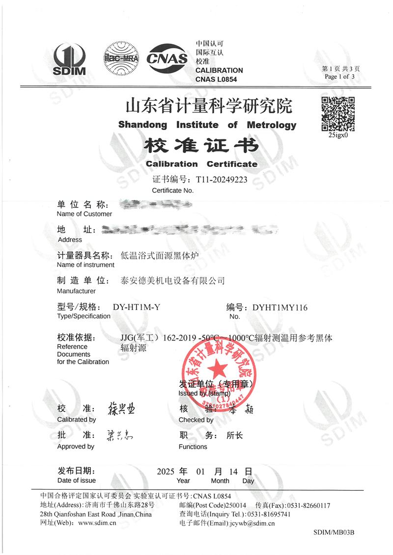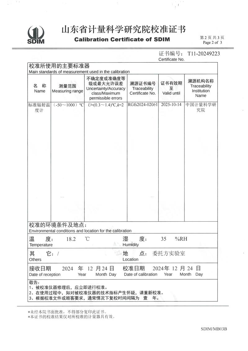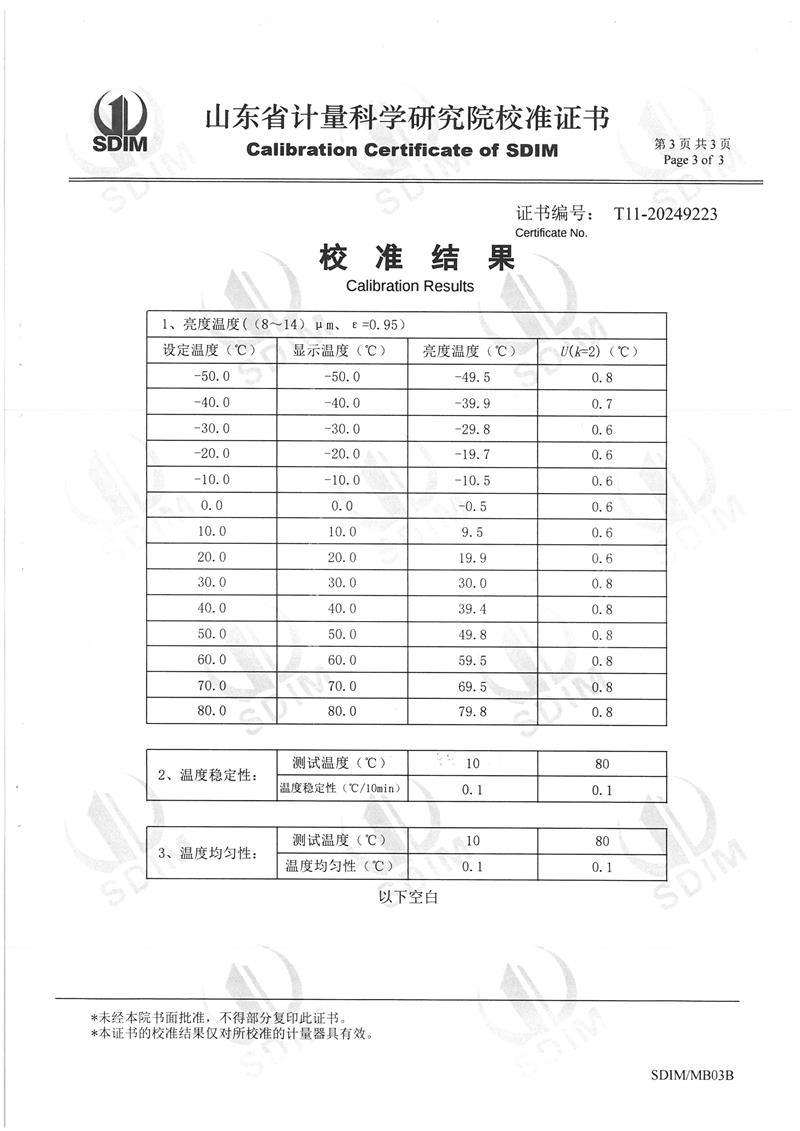 | 上一條:中溫干體爐(室溫+5~400℃)校準(zhǔn)證書 | 下一條:高精度制冷恒溫槽(-80~100℃)校準(zhǔn)證書 |