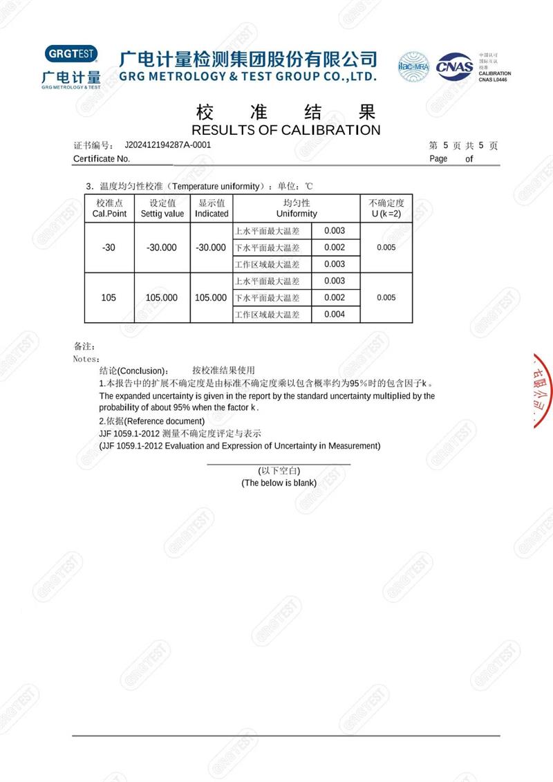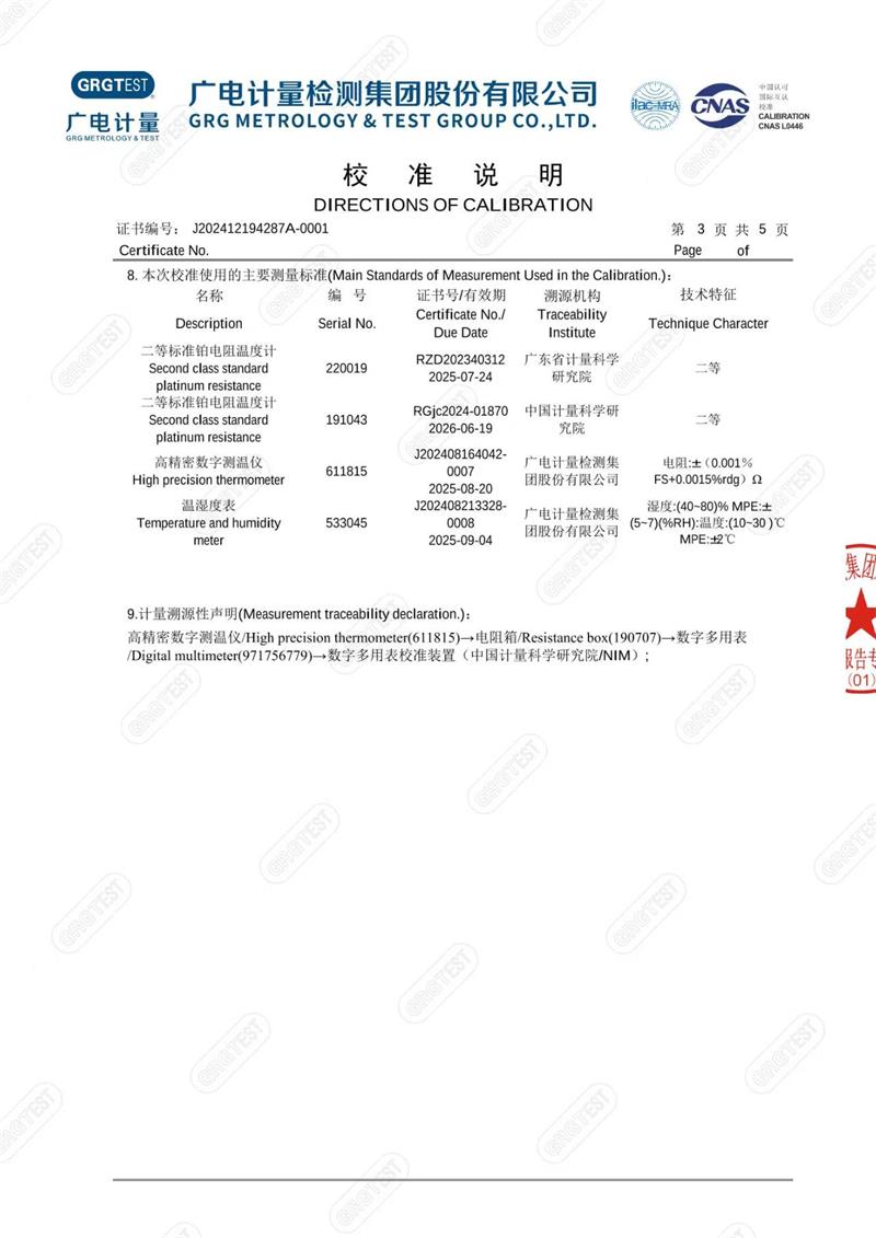 | 上一條:溫濕度巡檢儀測(cè)試系統(tǒng)校準(zhǔn)證書(shū) | 下一條:高精度制冷恒溫槽(-80~100℃)校準(zhǔn)證書(shū) |