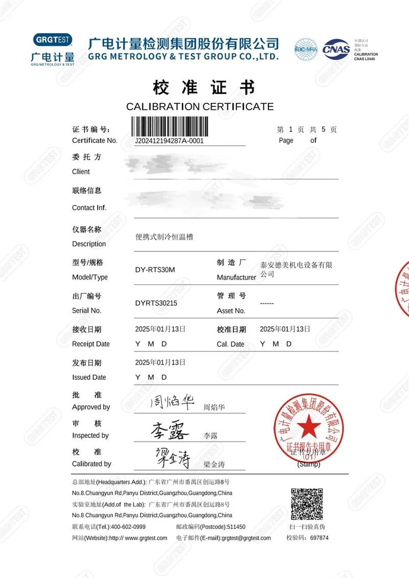 上一條:便攜式制冷恒溫槽(-30-105℃)校準證書下一條:DY-BO-50多通道冰點盒/冰點箱