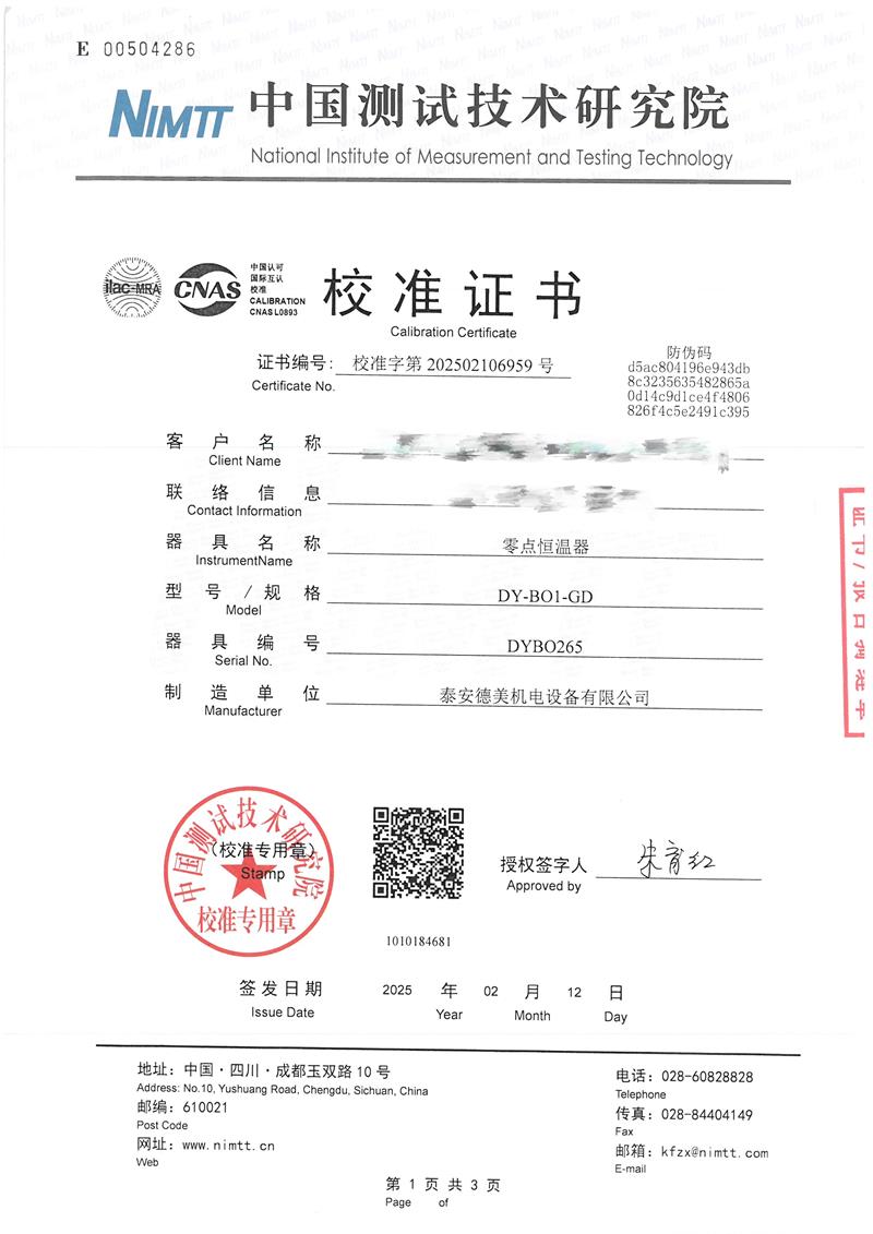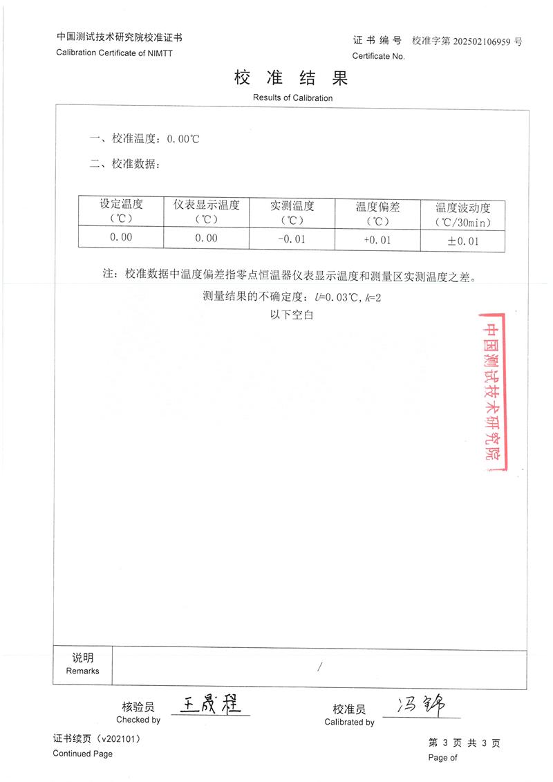 零點恒溫器校準證書 2025-3-12 本文被閱讀 3489 次