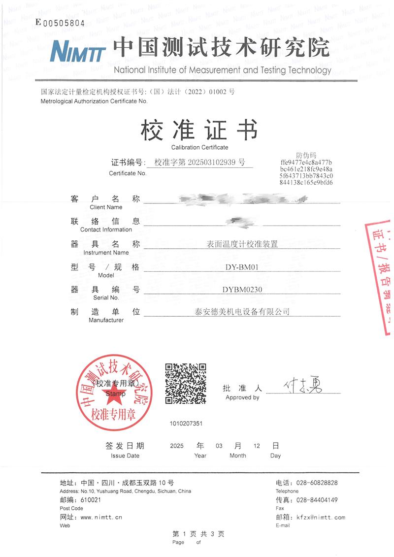| 上一條:中溫黑體爐(50~700℃)校準(zhǔn)證書(shū) | 下一條:高精度制冷恒溫槽(-80~100℃)校準(zhǔn)證書(shū) |