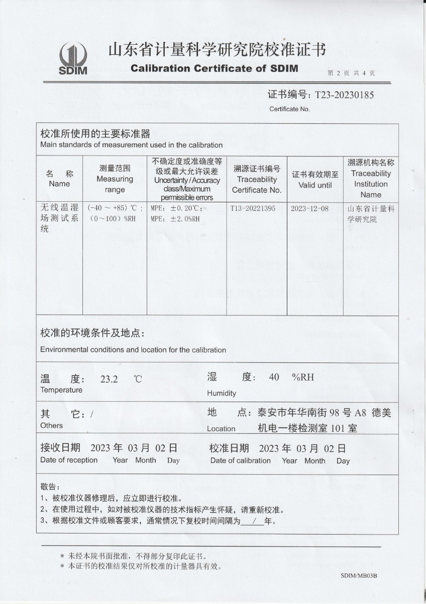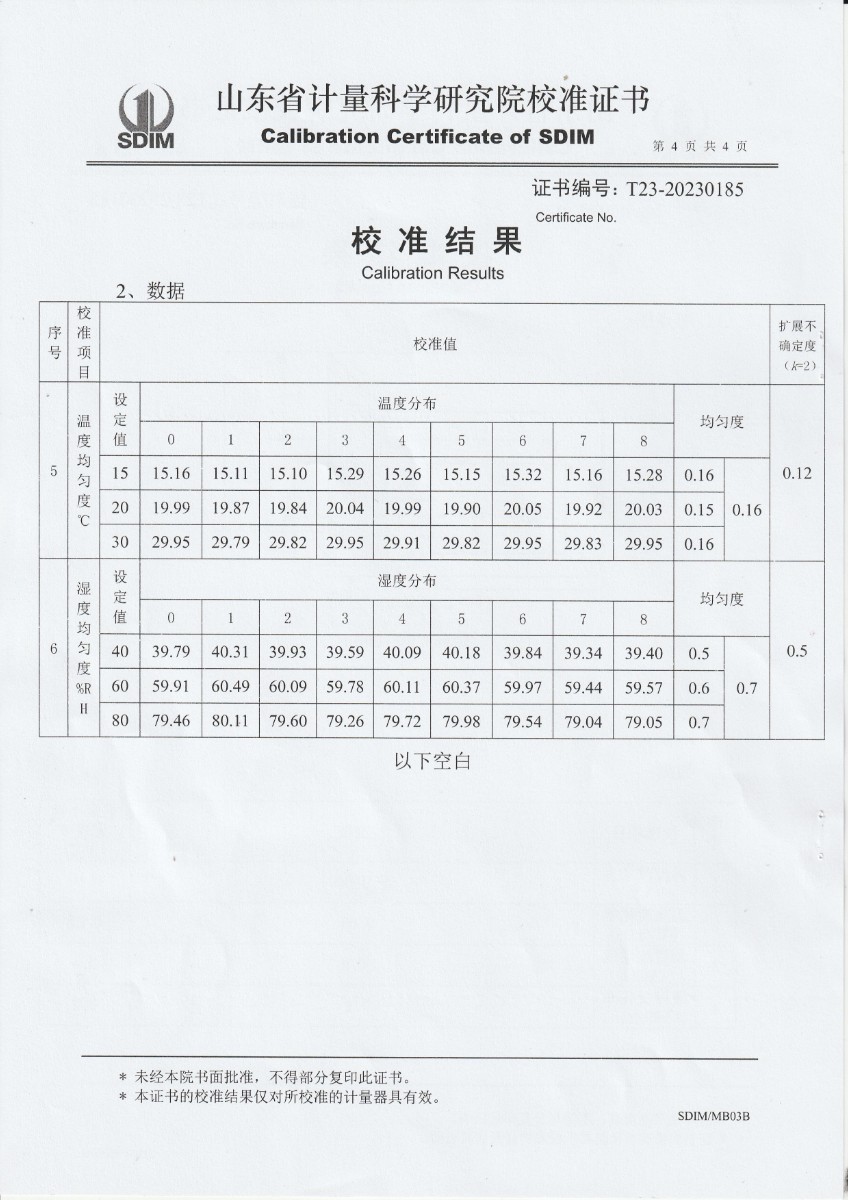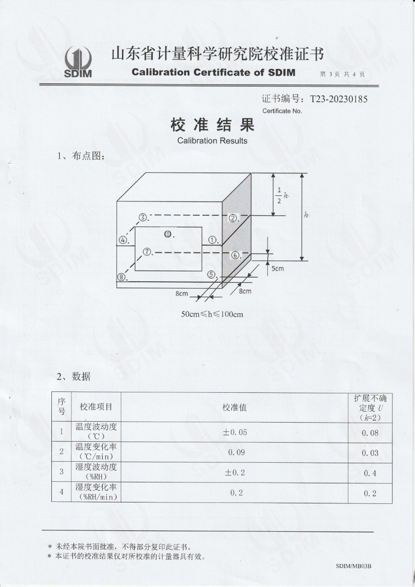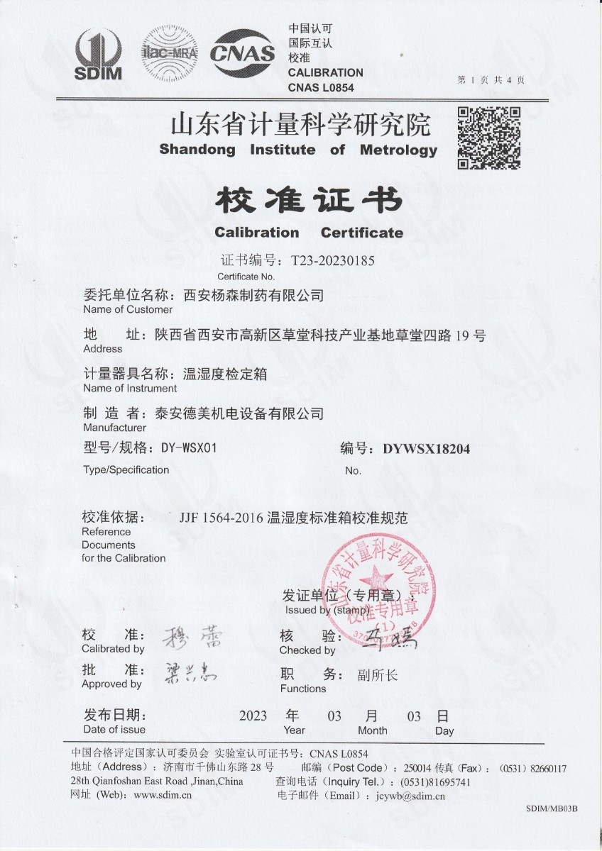 西安楊森制藥有限公司 溫濕度檢定箱 校準證書 2023-3-13 本文被閱讀 12198 次