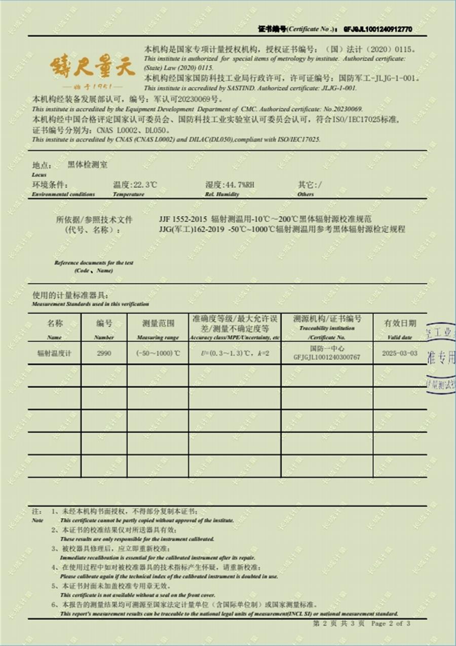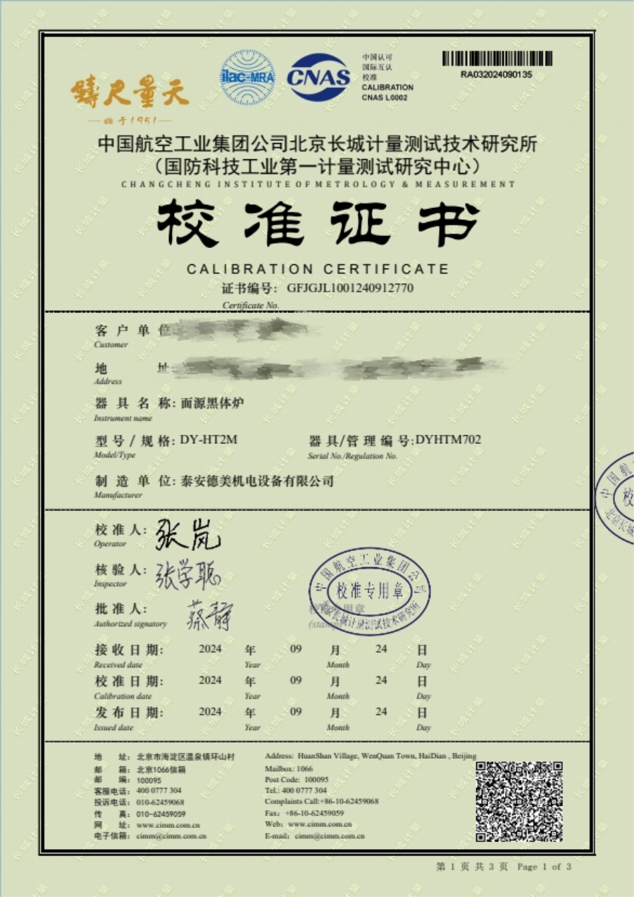 面源黑體爐校準(zhǔn)證書 2024-11-27 本文被閱讀 7334 次