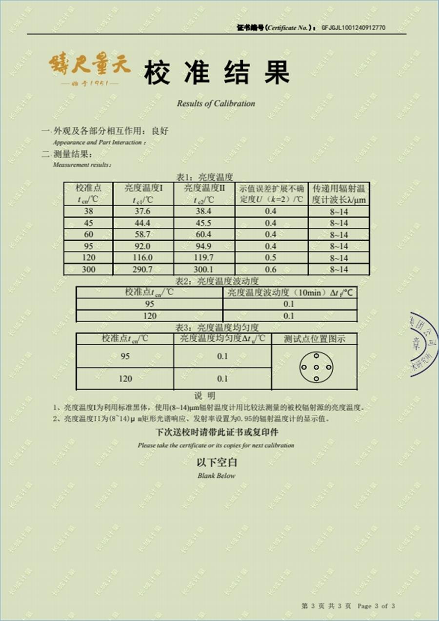 面源黑體爐校準(zhǔn)證書