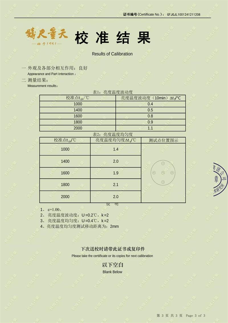 | 上一條:DY-HT3000超高溫黑體輻射源(600℃~3000℃) | 下一條:高精度制冷恒溫槽(-80~100℃)校準(zhǔn)證書(shū) |