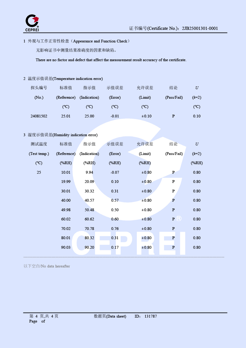 | 上一條:中溫面源黑體爐(室溫+5-500℃)校準(zhǔn)證書 | 下一條:露點(diǎn)儀檢定、校準(zhǔn)證書 |