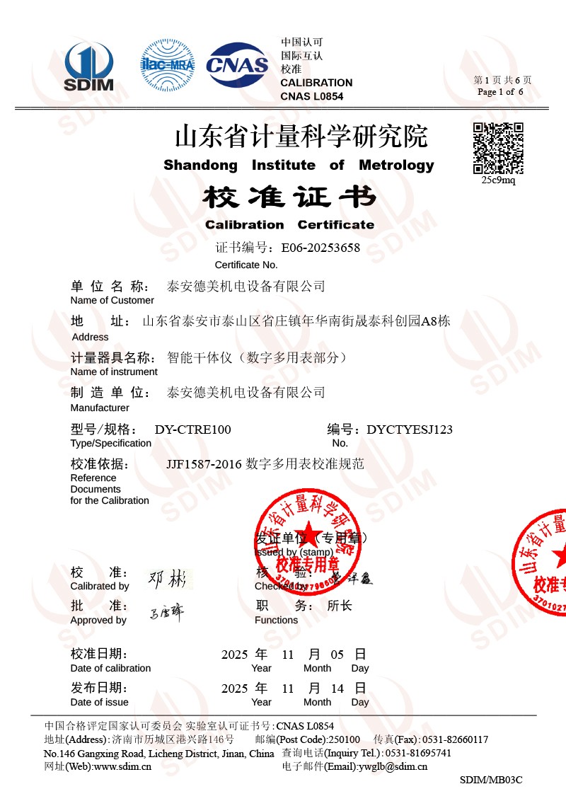 智能干體儀(六位半精度)校準證書 2025-11-14 本文被閱讀 838 次