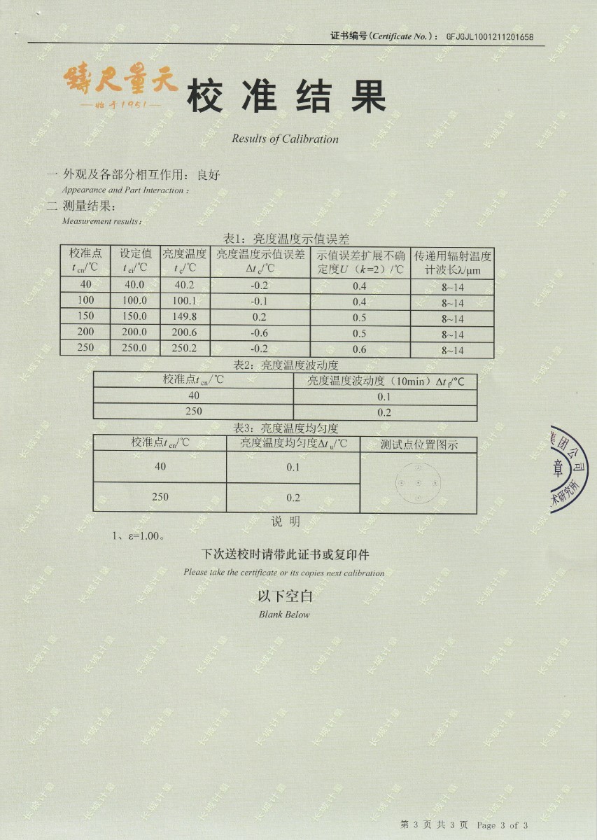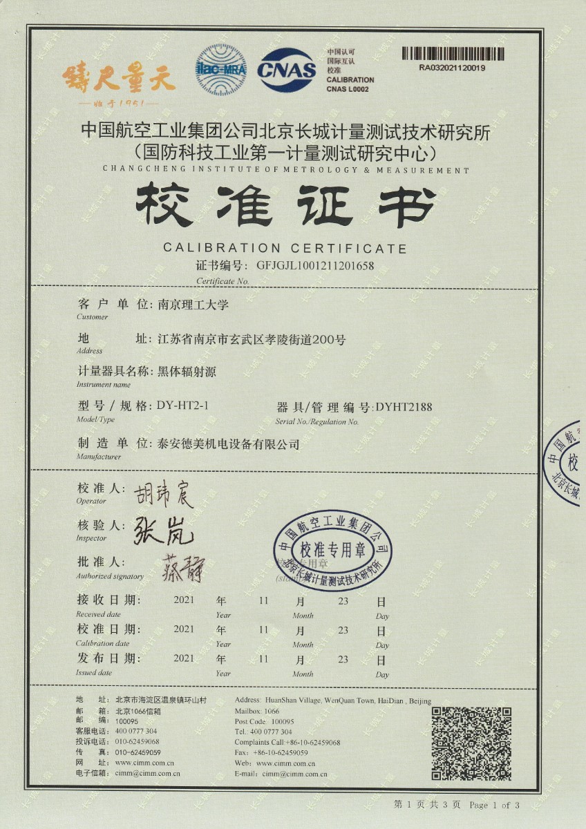 | 上一條:南京理工大學(xué)-黑體輻射源校準(zhǔn)證書(shū)-30-20℃ | 下一條:高精度制冷恒溫槽(-80~100℃)校準(zhǔn)證書(shū) |