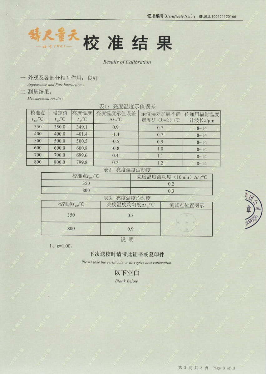 | 上一條:南京理工大學(xué)-黑體輻射源校準(zhǔn)證書300℃ | 下一條:高精度制冷恒溫槽(-80~100℃)校準(zhǔn)證書 |