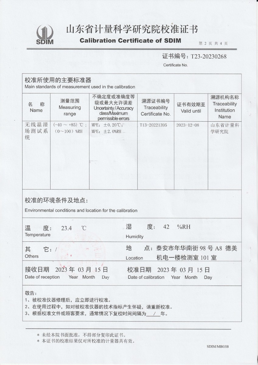 方圓檢測認證有限公司浙江金華分公司 溫濕度檢定箱校準證書 2023-3-25 本文被閱讀 14037 次