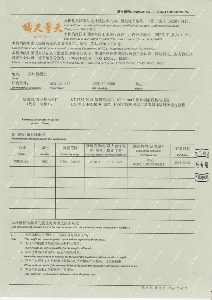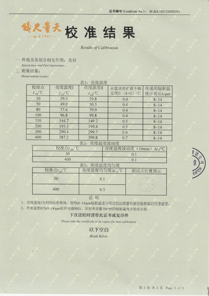 | 上一條:西安機(jī)電信息技術(shù)研究所 面源黑體爐 校準(zhǔn)證書(shū) | 下一條:高精度制冷恒溫槽(-80~100℃)校準(zhǔn)證書(shū) |
