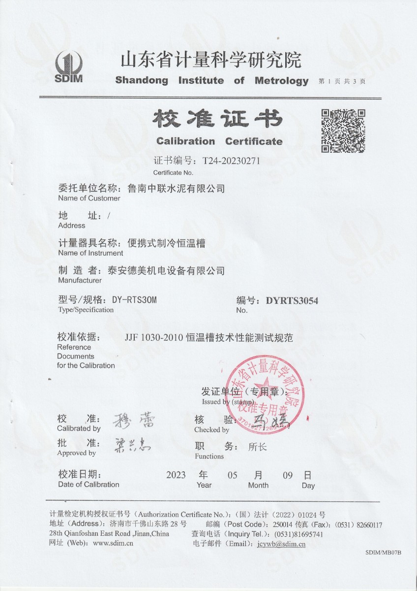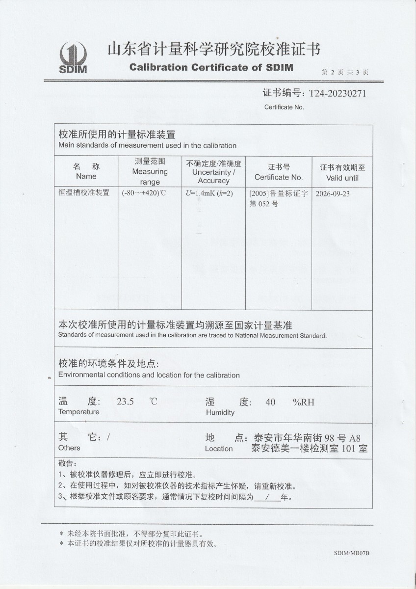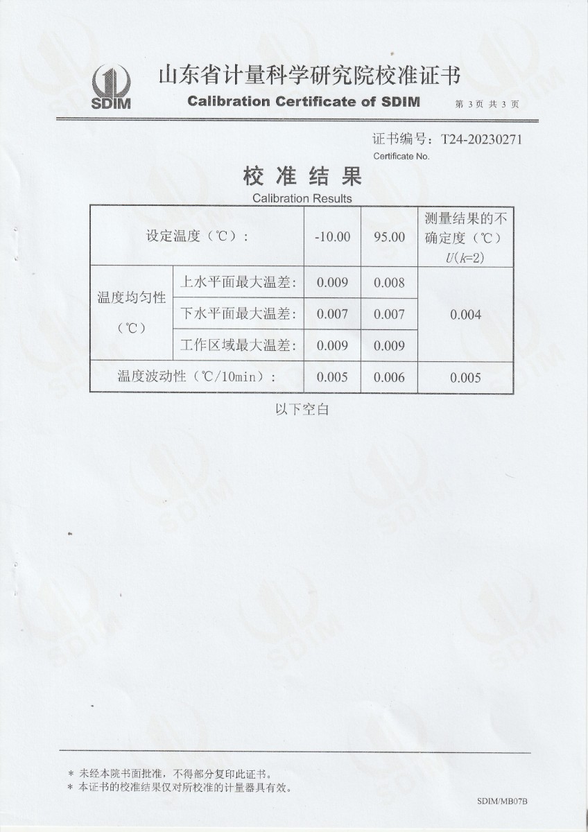 | 上一條:新疆中測測試有限公司 溫濕度標(biāo)準(zhǔn)箱 校準(zhǔn)證書 | 下一條:高精度制冷恒溫槽(-80~100℃)校準(zhǔn)證書 |