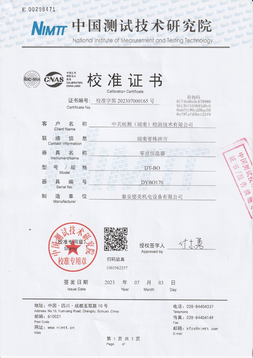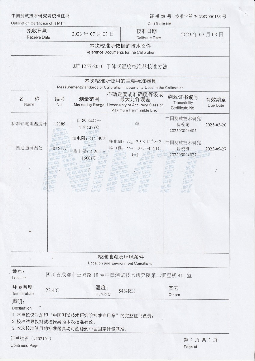 | 上一條:舟山長宏國際船舶修造有限公司-中溫干體爐 | 下一條:高精度制冷恒溫槽(-80~100℃)校準(zhǔn)證書 |