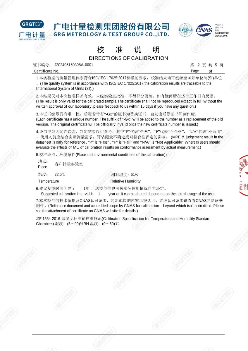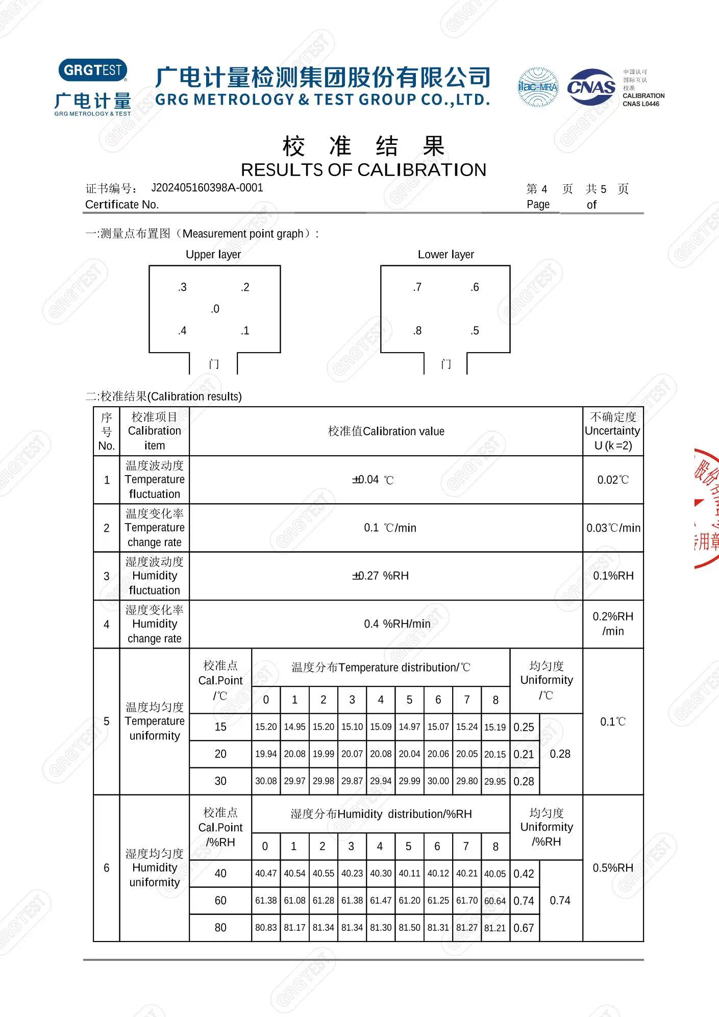 溫濕度檢定箱(-20-70℃)校準證書 2024-6-5 本文被閱讀 6806 次