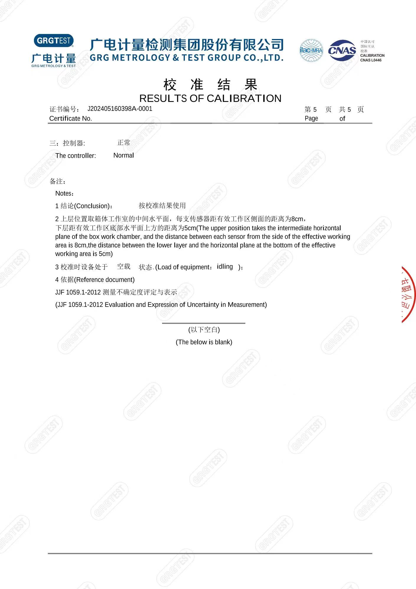 上一條:零點恒溫器(0℃±0.1℃)校準證書下一條:高精度制冷恒溫槽(-80~100℃)校準證書