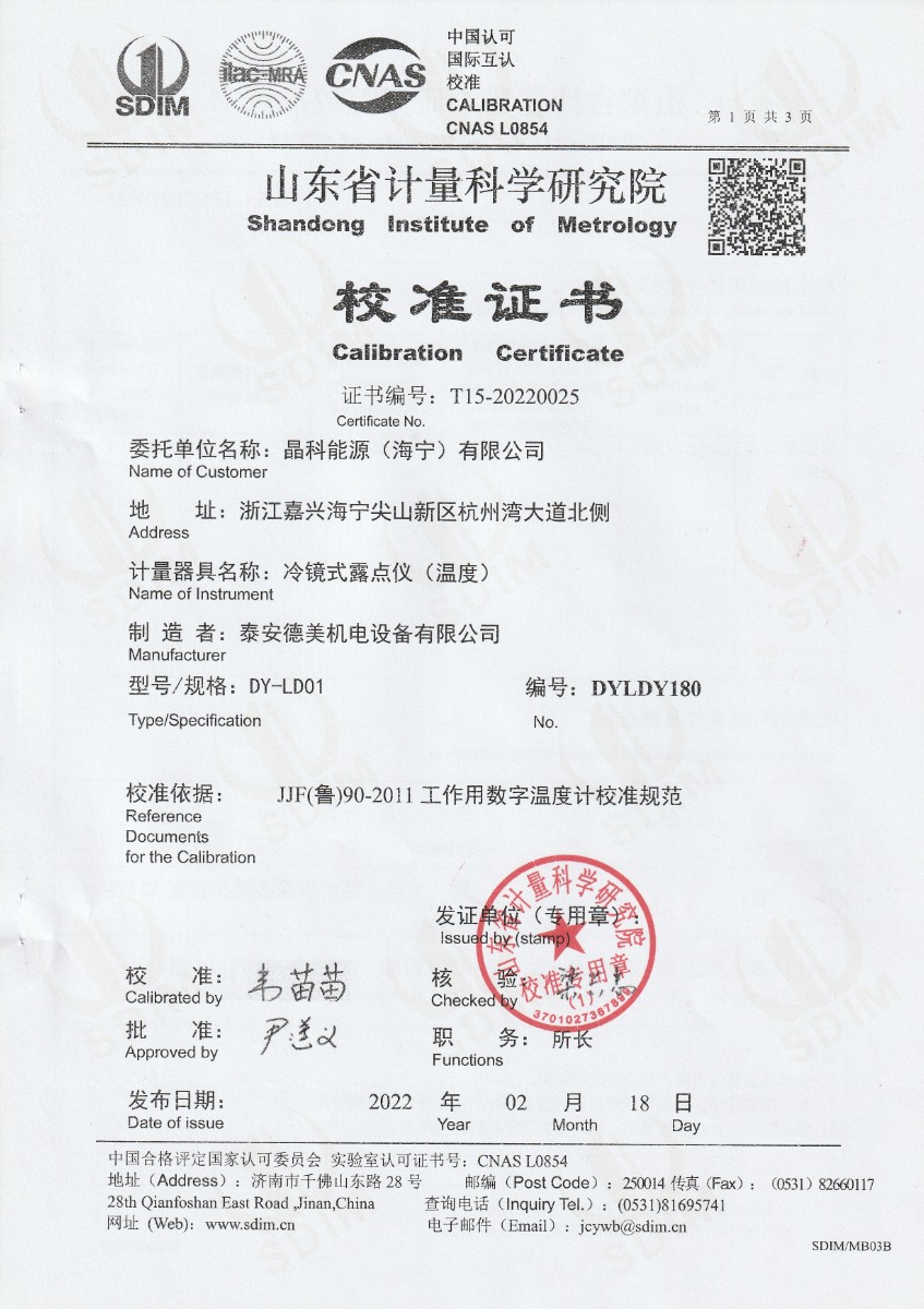 | 上一條:河北京車軌道交通車輛裝備有限公司-冷鏡式露點(diǎn)儀檢定證書 | 下一條:高精度制冷恒溫槽(-80~100℃)校準(zhǔn)證書 |