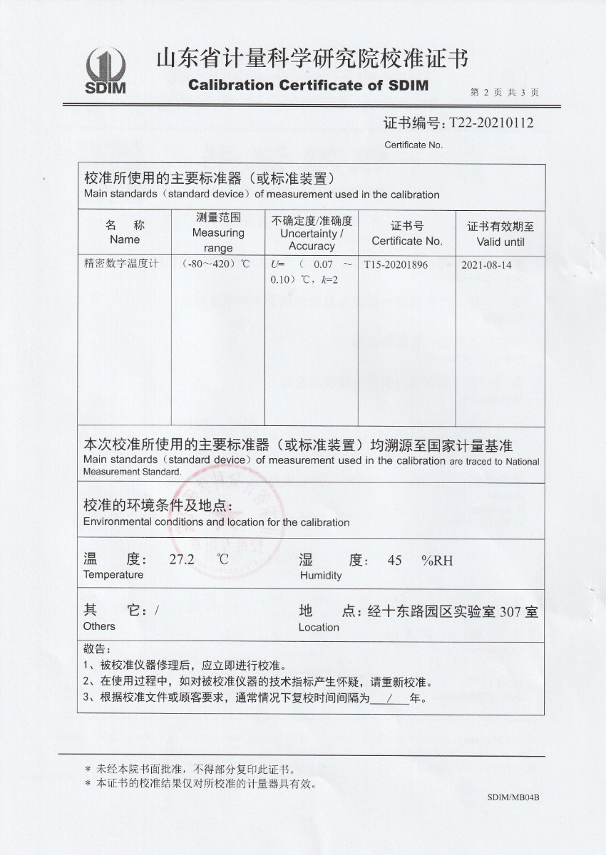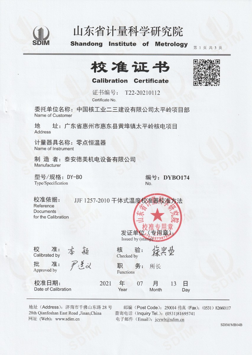 | 上一條:中國核工業(yè)二三建設(shè)有限公司太平嶺項目部-標準鉑銠10-鉑熱電偶 | 下一條:高精度制冷恒溫槽(-80~100℃)校準證書 |
