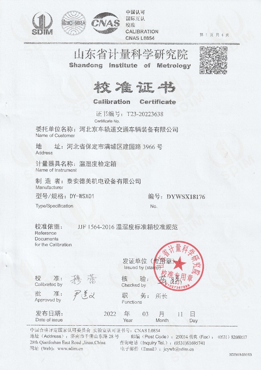 | 上一條:河北京車軌道交通車輛裝備有限公司-低電勢掃描開關(guān) | 下一條:高精度制冷恒溫槽(-80~100℃)校準證書 |