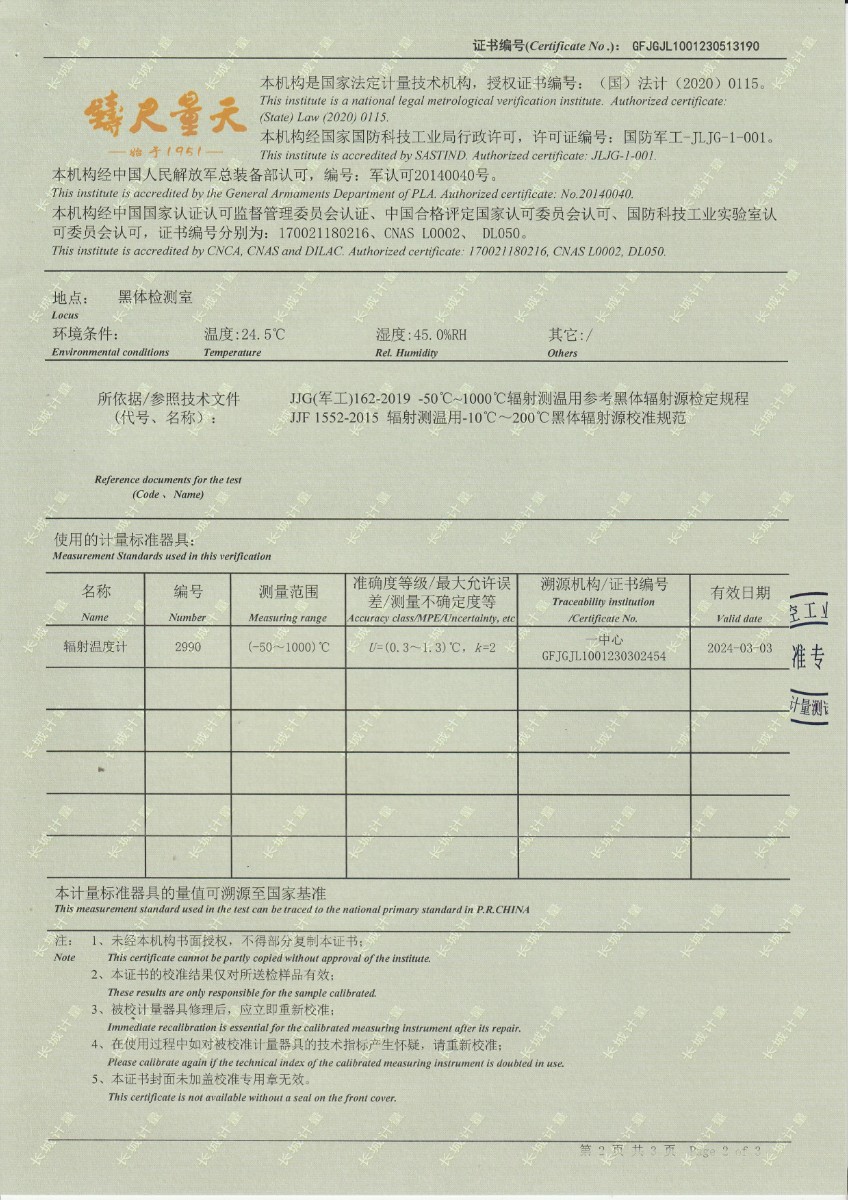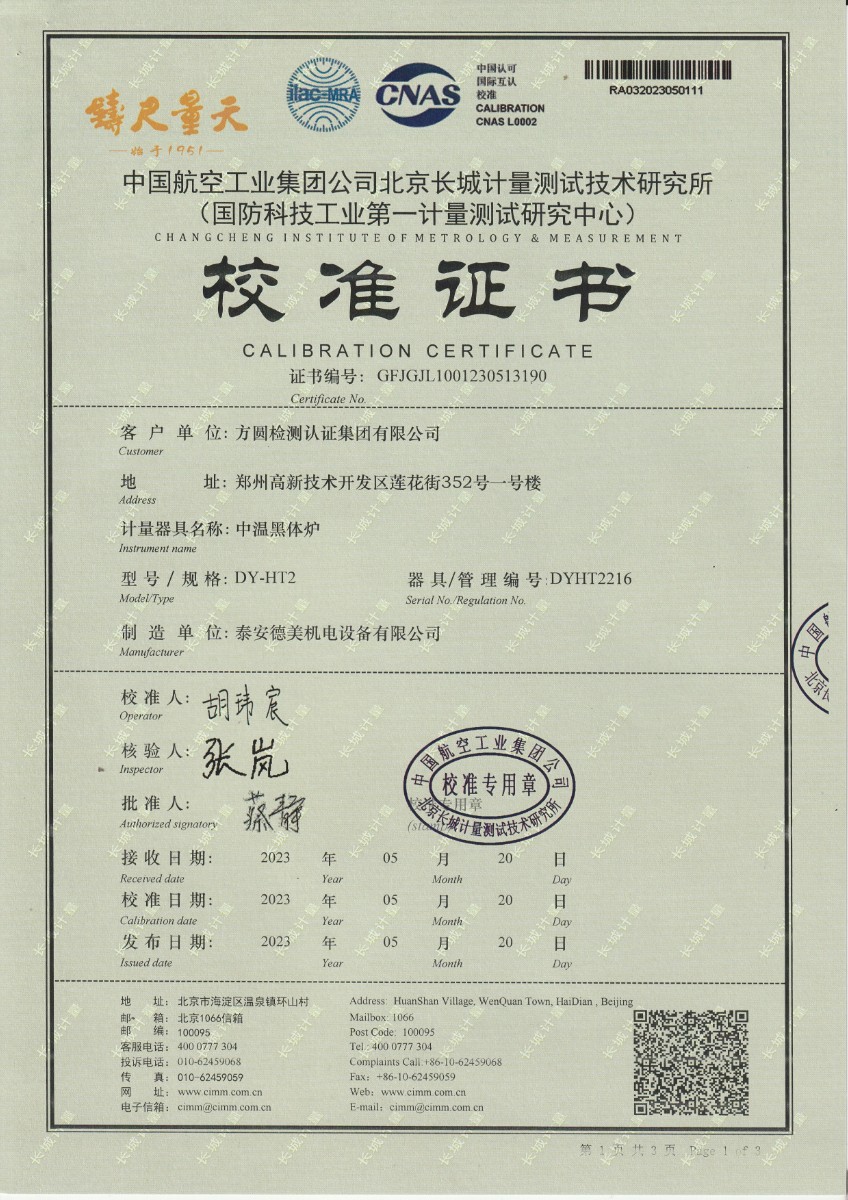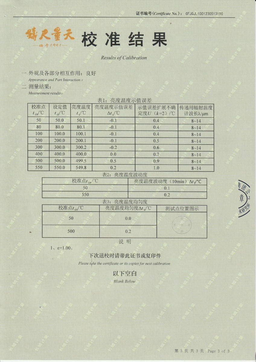 | 上一條:山東凱利布森測控技術(shù)有限公司 耳溫空腔(黑體輻射源) 校準(zhǔn)證書 | 下一條:高精度制冷恒溫槽(-80~100℃)校準(zhǔn)證書 |
