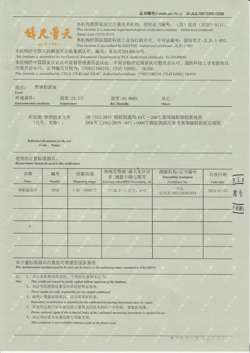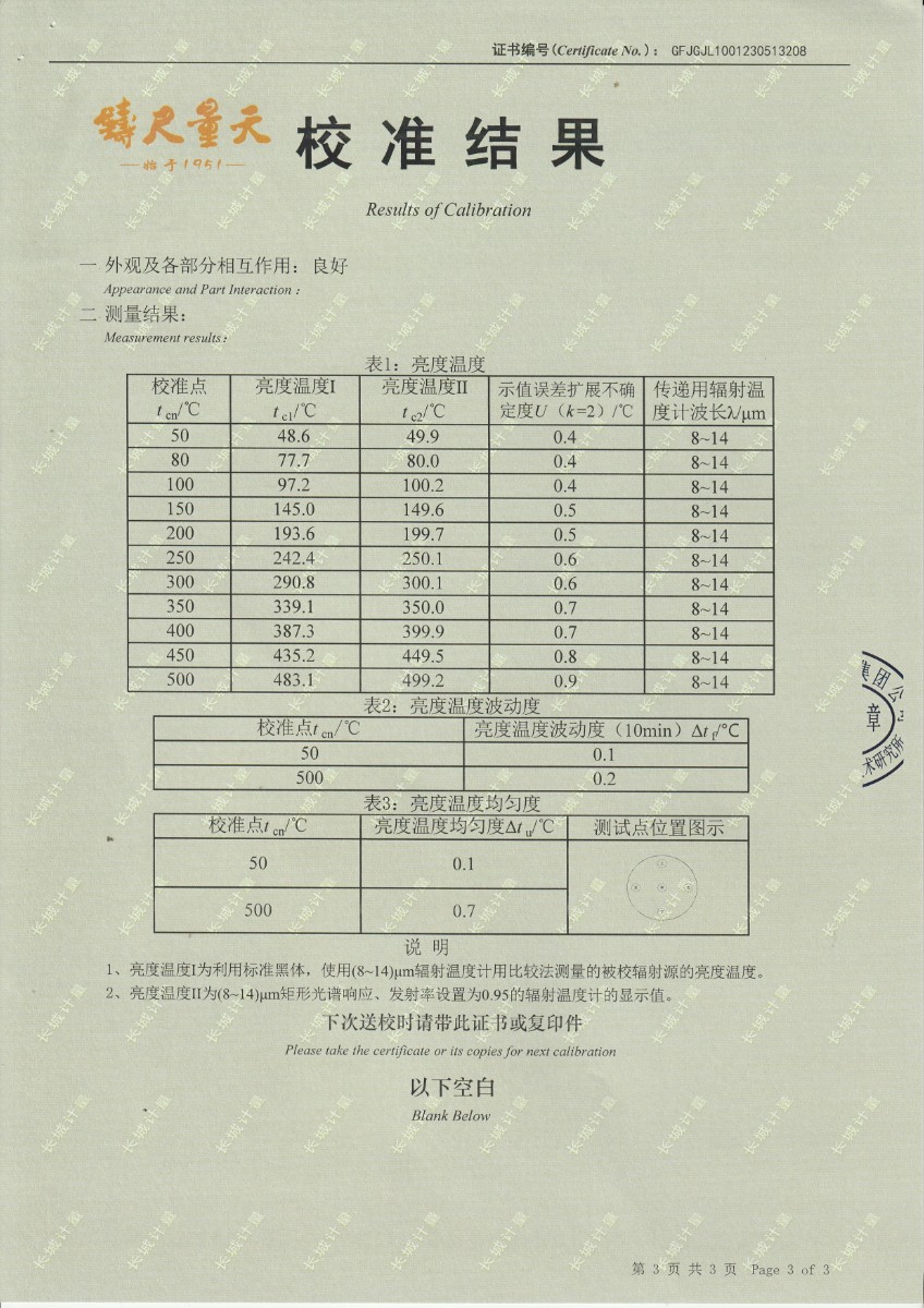 云南馳宏國際鍺業(yè)有限公司 面源黑體校準證書