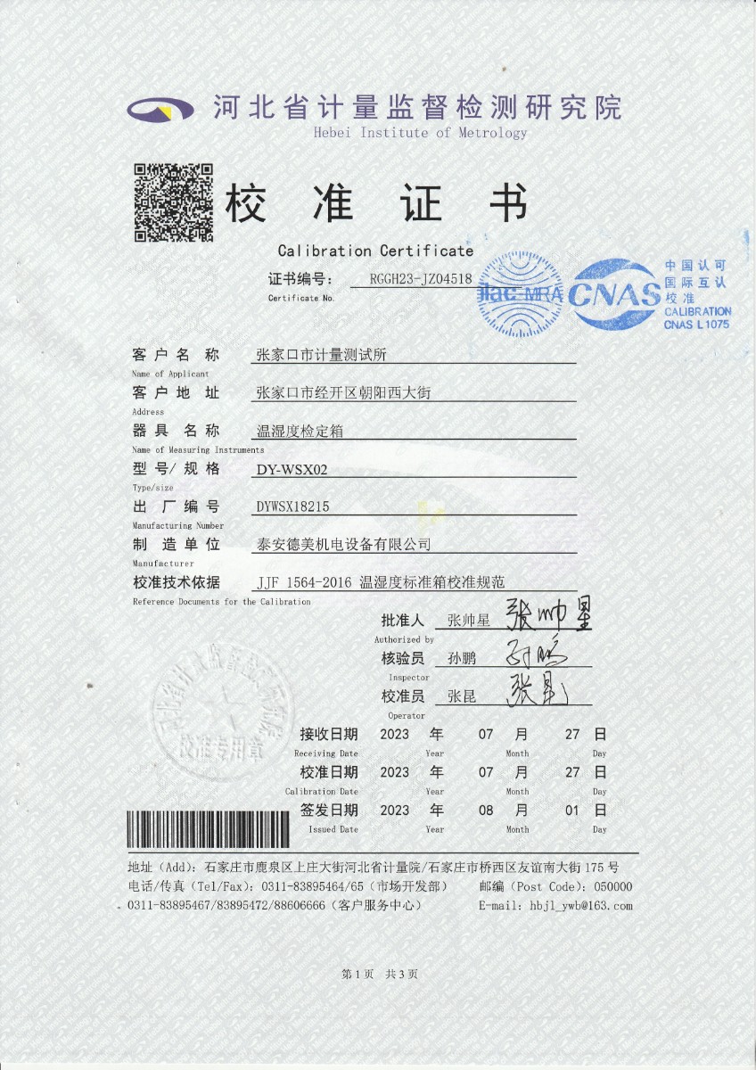 | 上一條:聞泰通訊股份有限公司-溫濕度檢定箱 | 下一條:露點(diǎn)儀檢定、校準(zhǔn)證書(shū) |