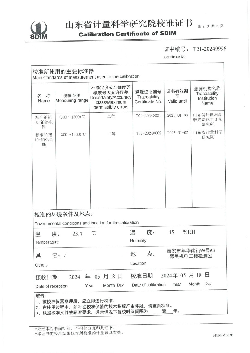 熱電偶檢定爐校準證書 2024-5-25 本文被閱讀 6531 次