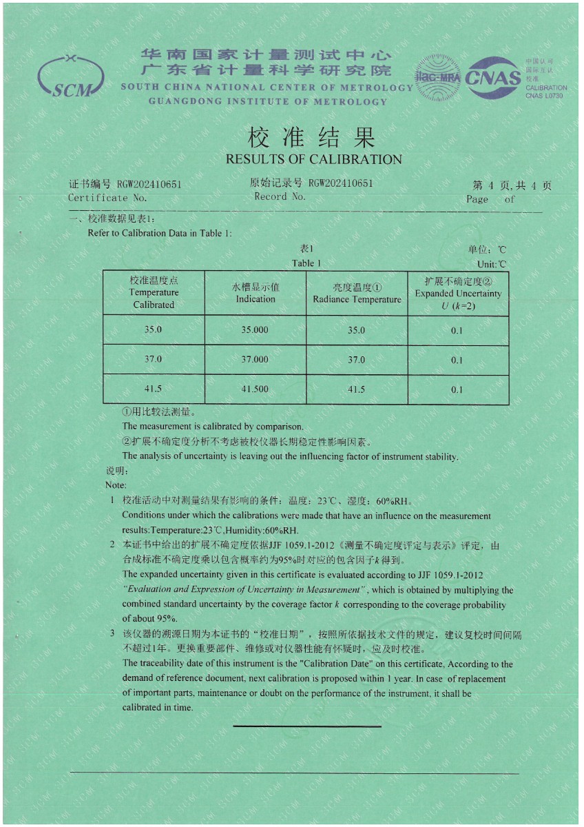 耳溫空腔(黑體輻射源)校準(zhǔn)證書 2024-5-27 本文被閱讀 6602 次