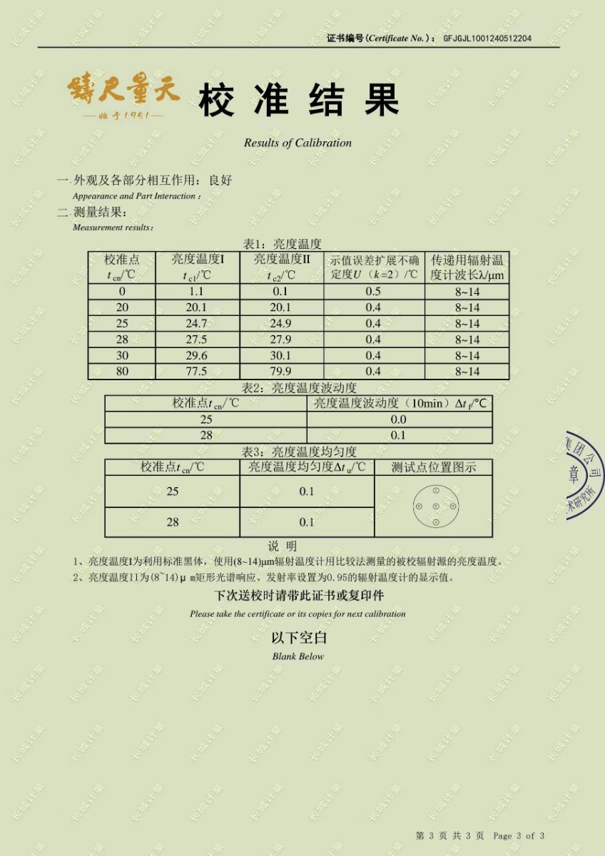 面源黑體爐校準證書 2024-5-31 本文被閱讀 7125 次